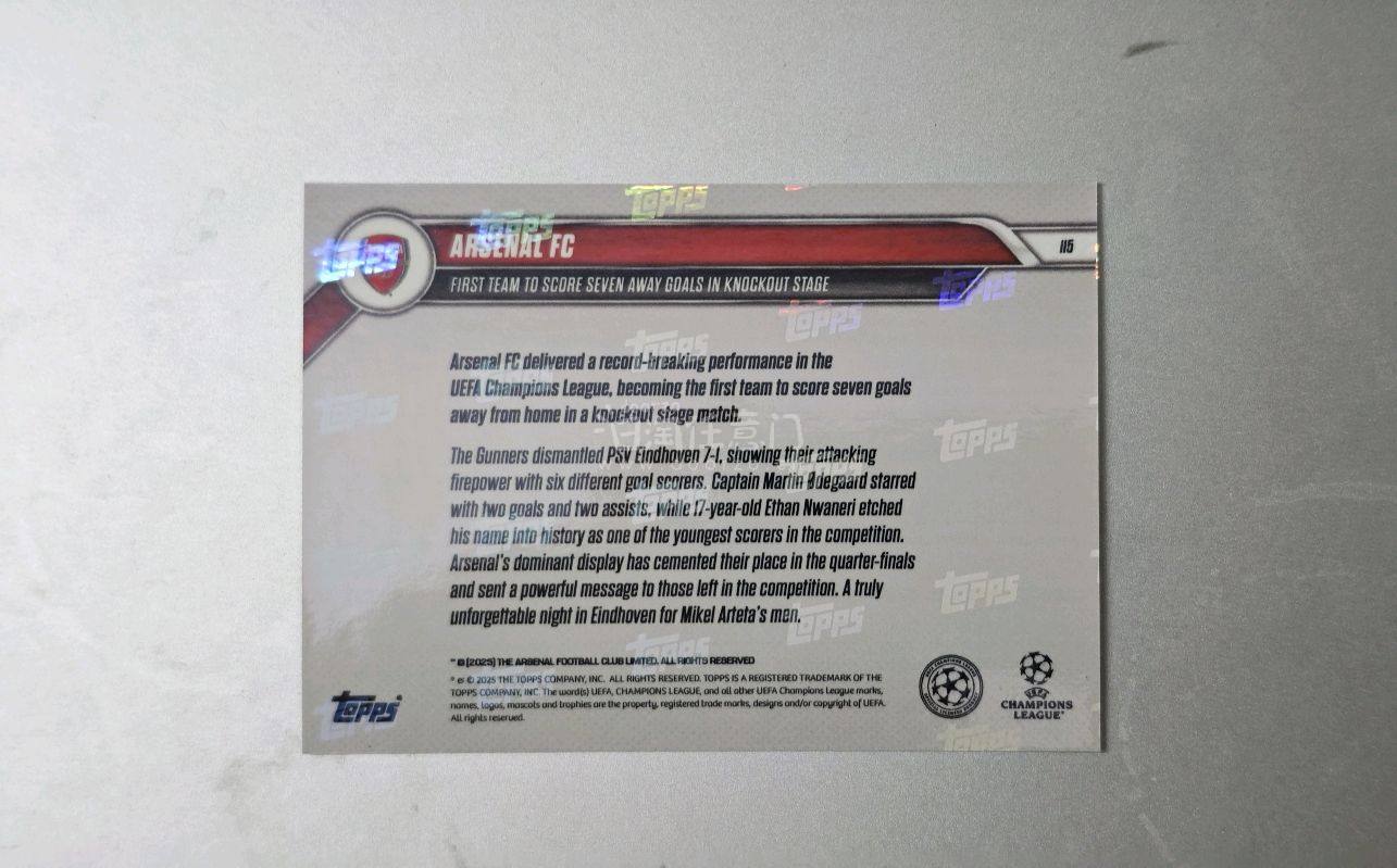 【5枚限定】アーセナルTopps Now CL デクランライス Arsenal