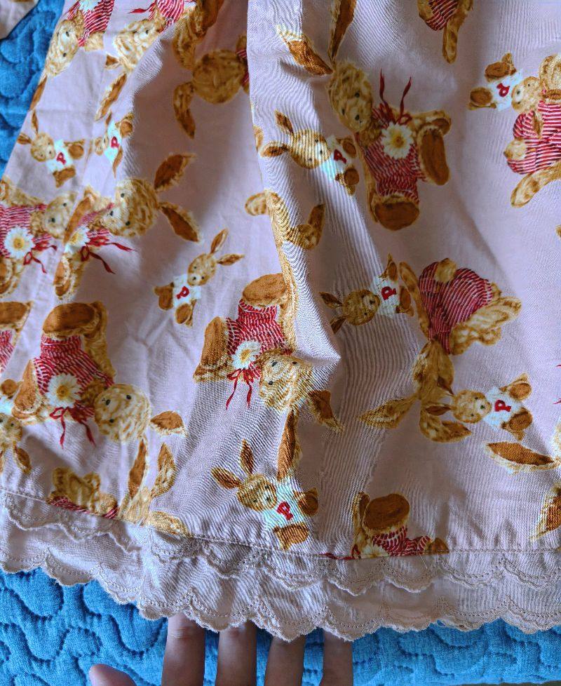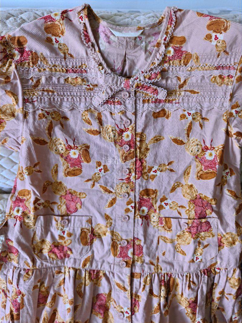我一直很喜欢pinkhouse这个牌子,可惜国内能买到的款式特别有限且价格贵,后来开始关注中古款,发现有些中古款的细节和版型反而更戳我,就是靠谱的购买渠道不好找。 偶然间知道了挖煤姬,抱着试试的心态上去逛了逛,没想到上面的pinkhouse款式特别全,不仅有近几年的款,还有不少少见的中古款,价格也比国内二手平台划算不少,不用花大价钱就能淘到心头好。这次专门挑了一件兔子柄的简单op,选的时候还挺忐忑,毕竟是网购中古品,怕实物和图片差距大,也担心成色不好。 等收到快递拆开的瞬间,心里一下子就踏实了——衣服比我想象中新太多,几乎看不出使用痕迹,领口和袖口的走线都整整齐齐,没有勾丝也没有污渍,几乎全新。实物的颜色比图片里更柔和,兔子图案的印花特别清晰,面料摸着手感也很舒服,穿着轻薄透气。