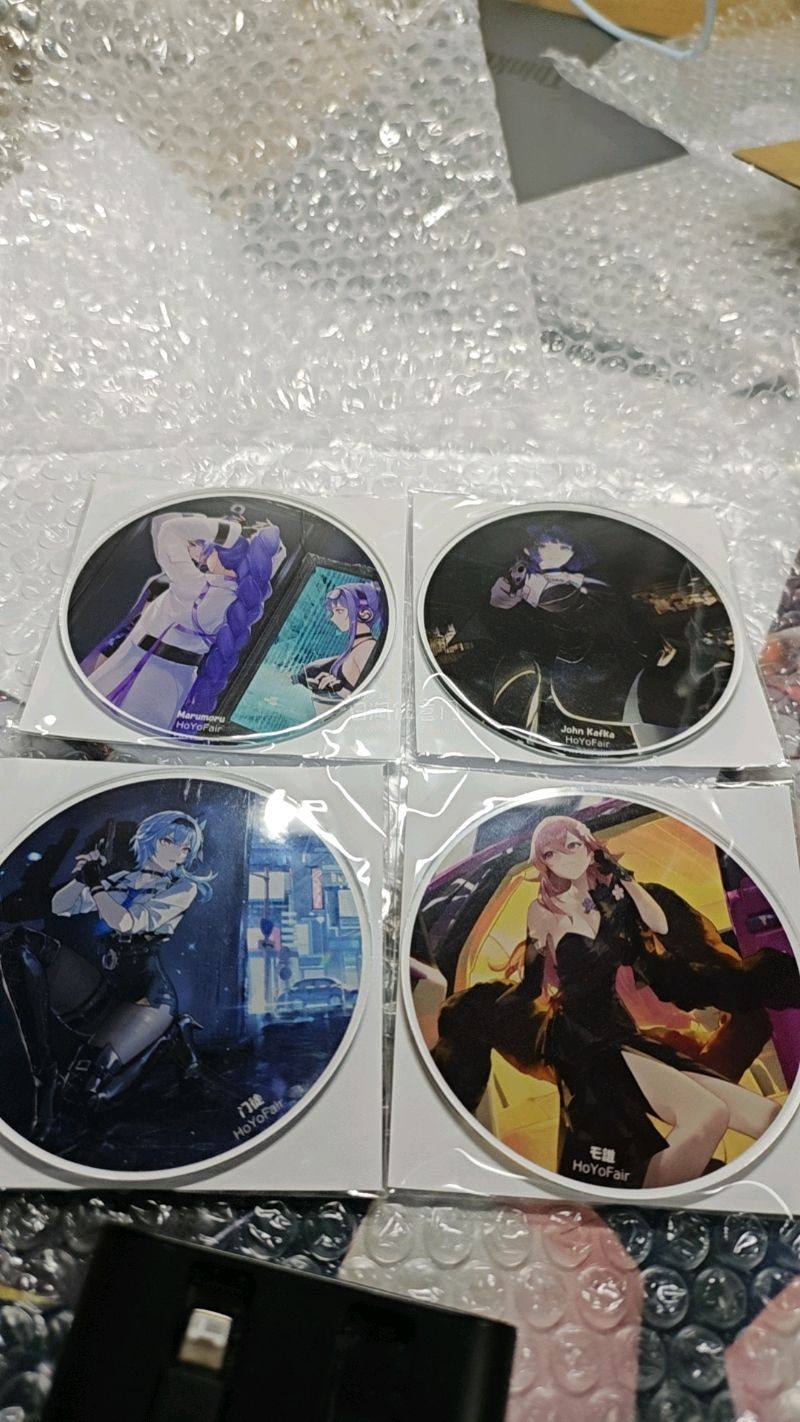这一箱走的是竹蜻蜓plus,运费加上强化打包一个花费60r每一个谷子都有单独包装安全下车没有损坏,这一箱里面,之前看别的老师拍的将军和神子的实物图给我种草了,用挖煤姬切了两个,拿到手以后,真的很好看,镭射底用闪光灯照很闪闪的