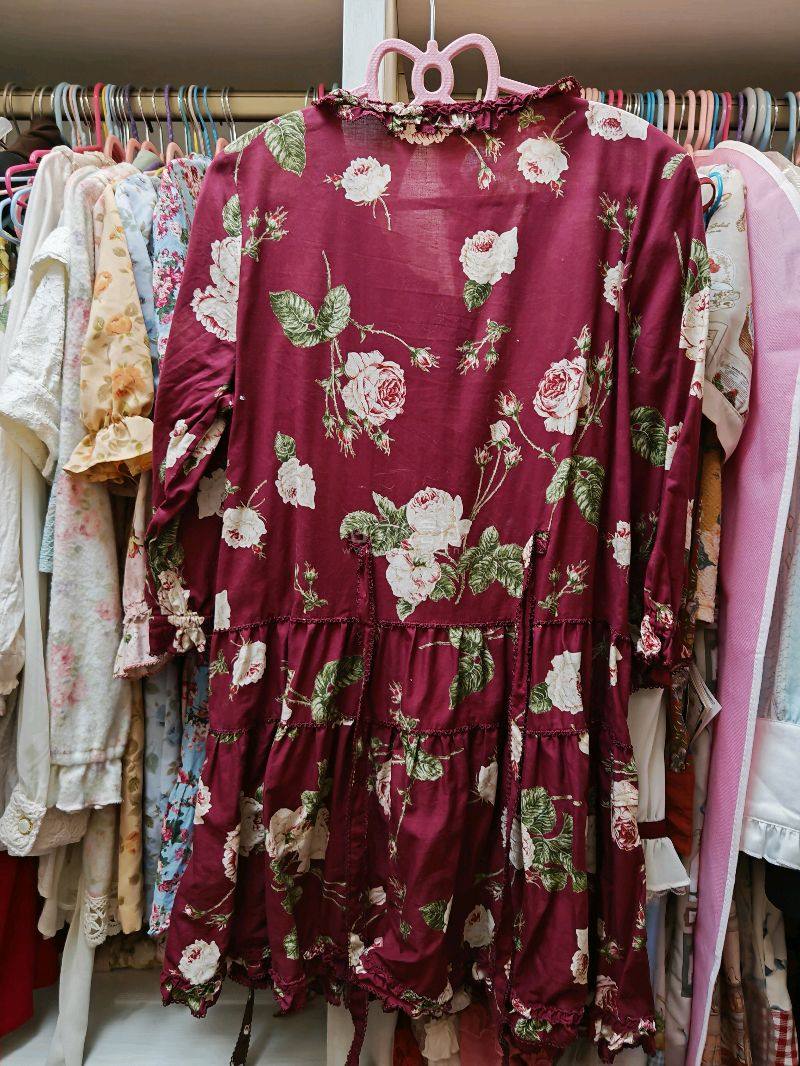 【美品】ピンクハウス★薔薇プリント チュニック ローズ柄 フリル襟&リボン♪ボルドー色系 z11531