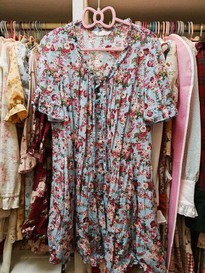 ピンクハウス花柄 半袖チュニック 青色