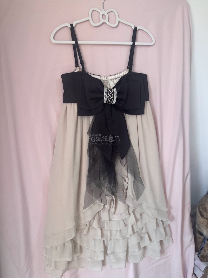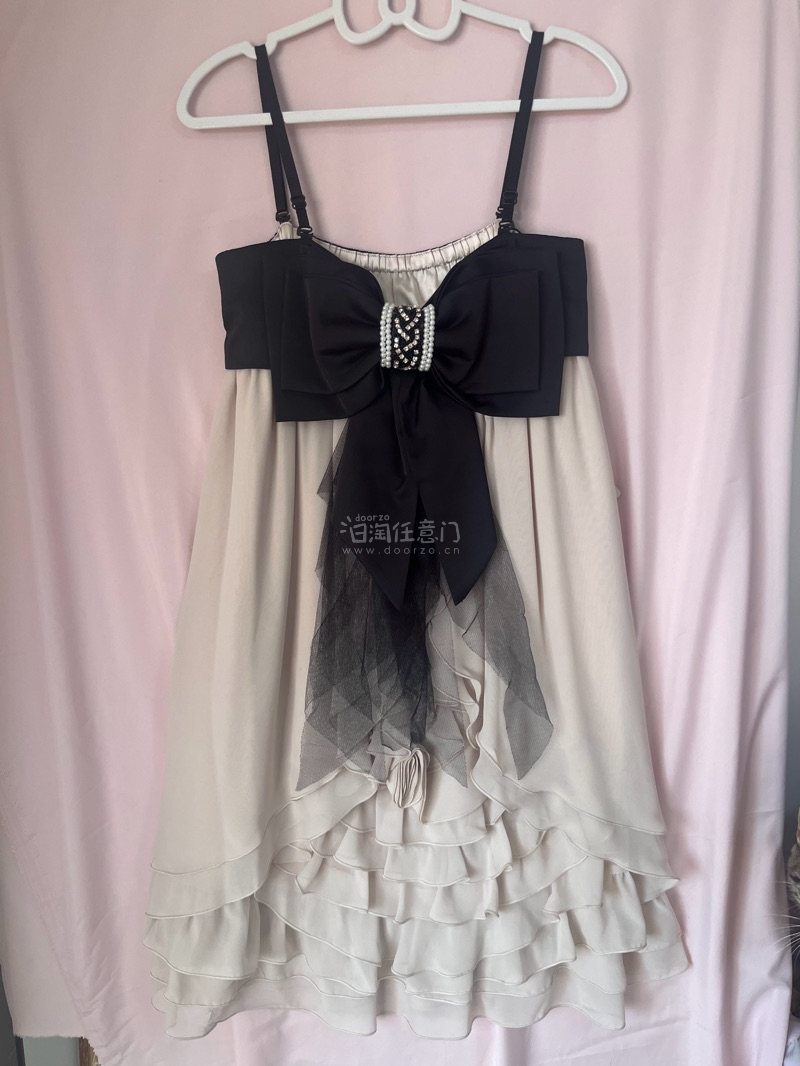 新品タグ付き シフォン製ホワイト&ブラックドレス 結婚式 二次会 パーティ