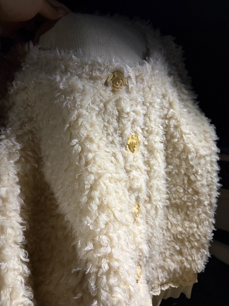 挖到宝的奶白色卷毛外套!软乎乎的质感超亲肤,金色山茶花纽扣超精致,搭裙子裤子都好看,氛围感直接拉满✨