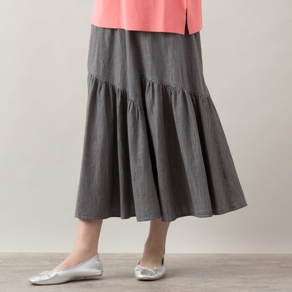 ■大人可愛いスタイルに仕上がる、6枚接ぎティアードスカート■