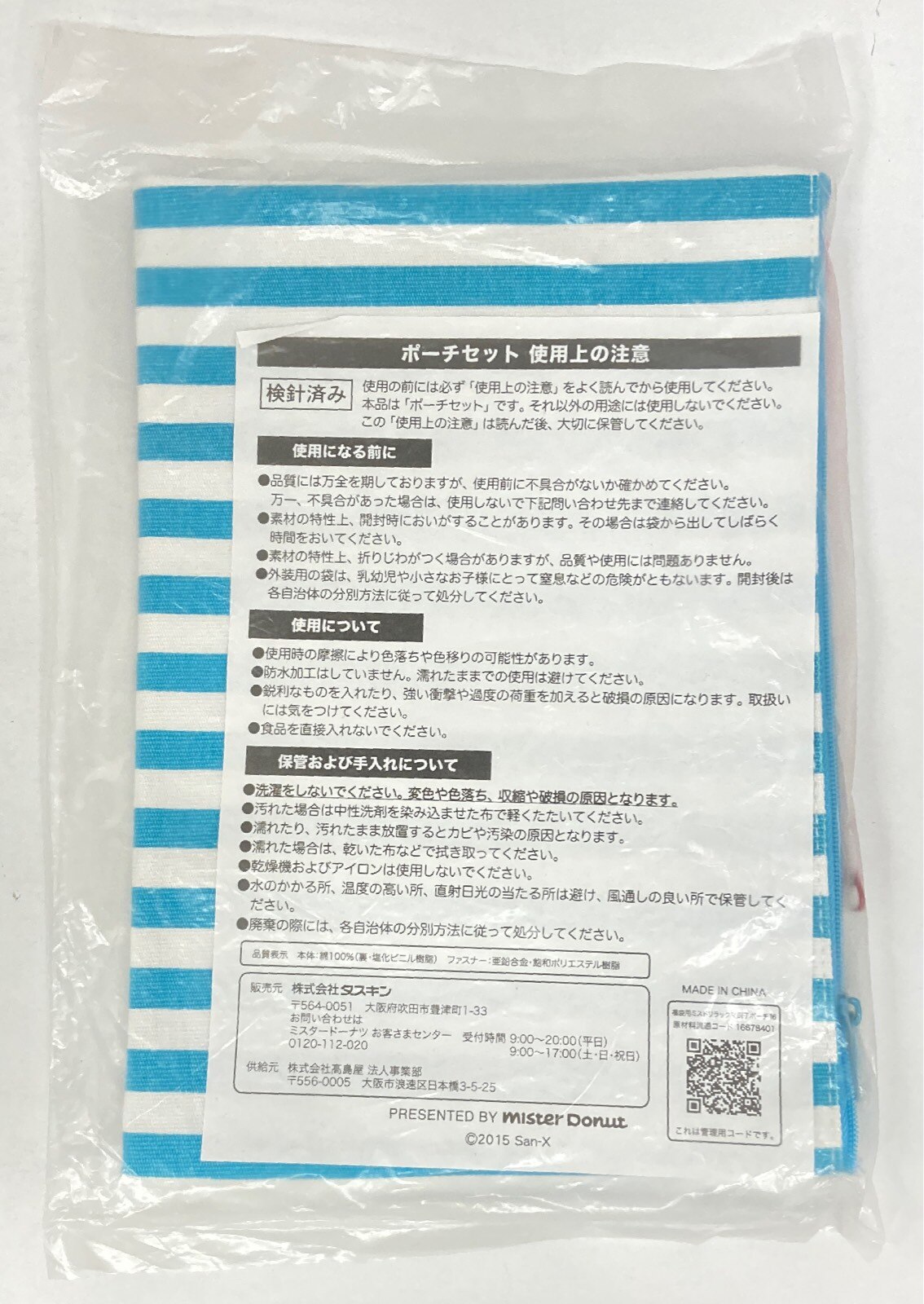 • 布製品(バッグ、タペストリー、ハンカチ等)は保管の際や発送の際に折りたたんでいる場合があり、折れ跡が付いてしまっている可能性があります