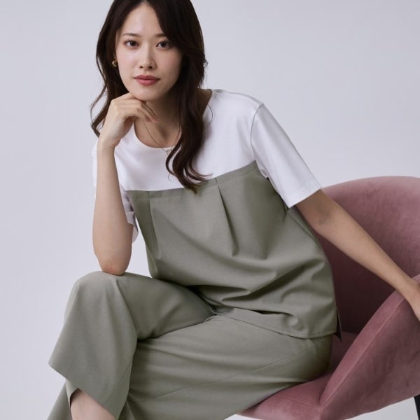 同素材のパンツ(品番187-63886)を展開していますので、セットアップとしても着ていただけます。