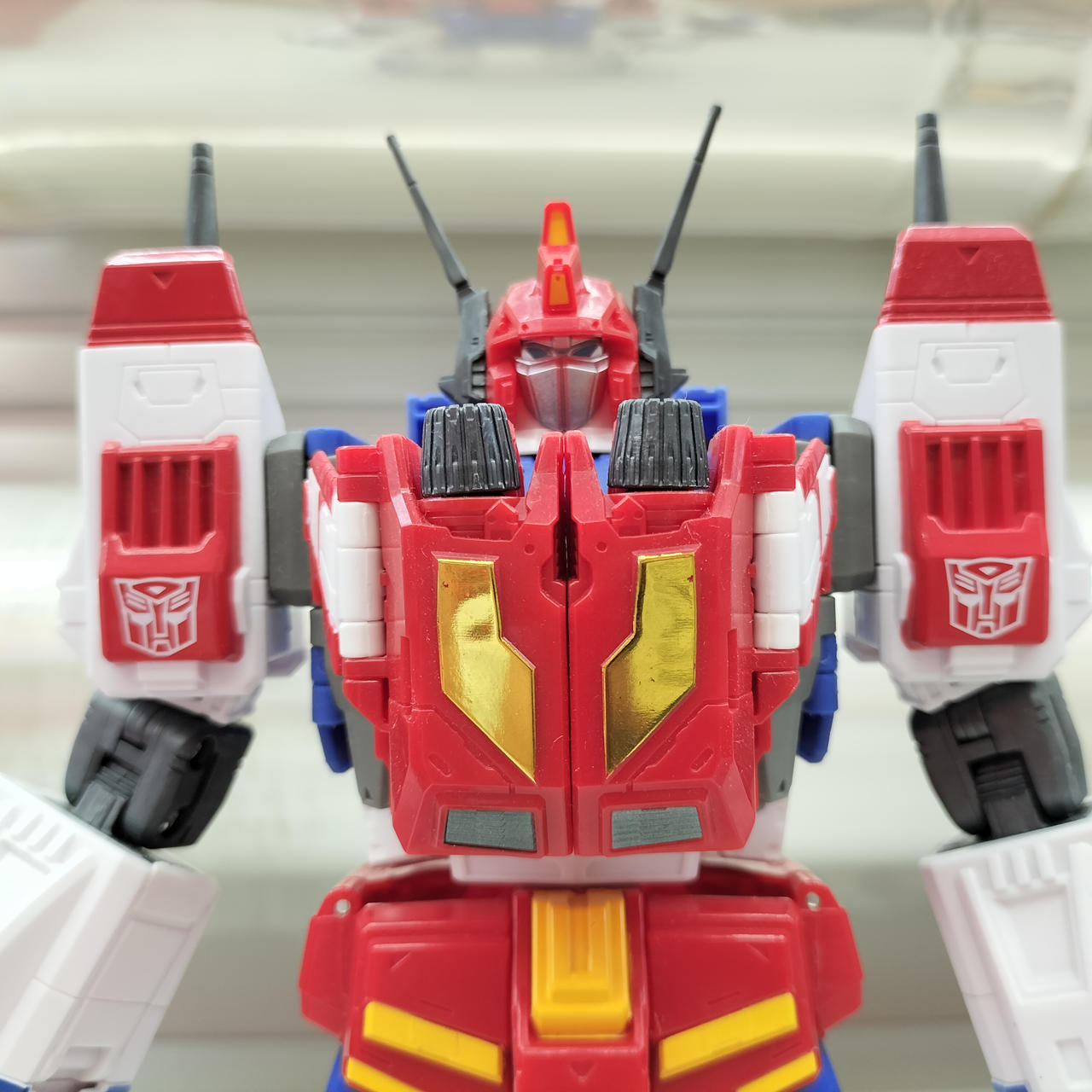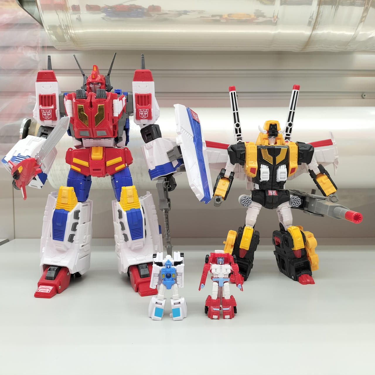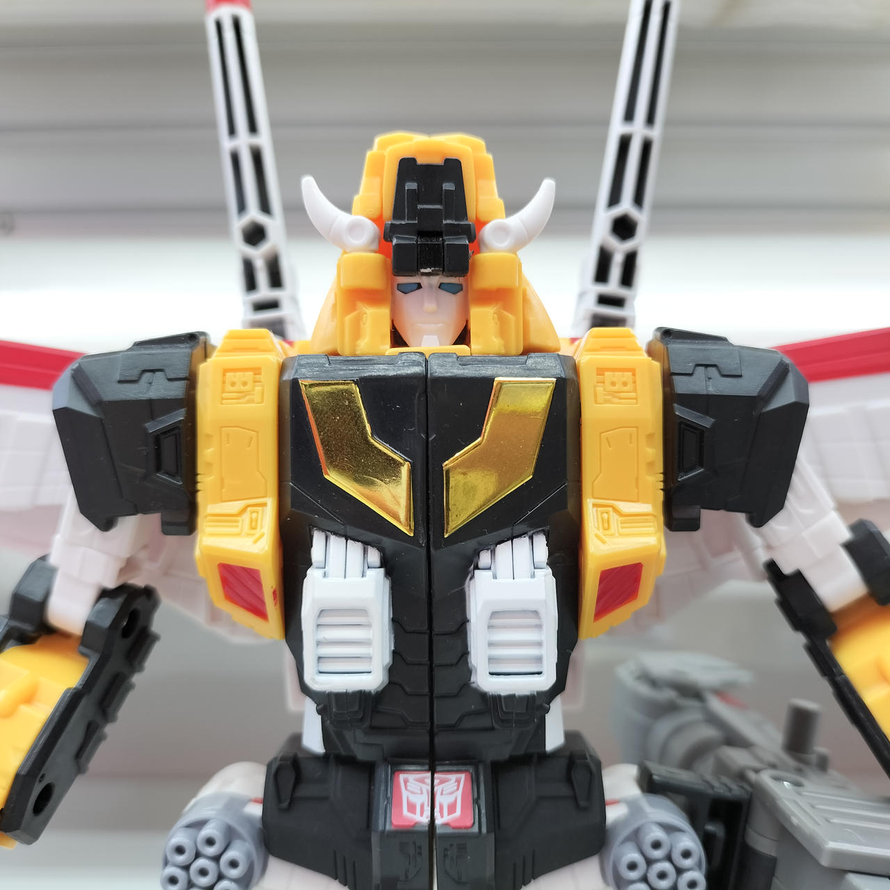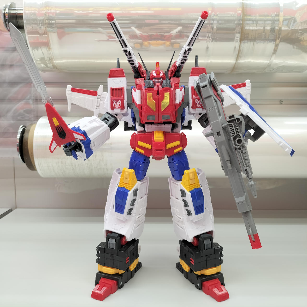 状態:  個体差のためか、スターセイバー両ひざのクリック関節が多少弱いです。合体状態でいくらか開脚させる程度ならある程度安定して立たせられました。