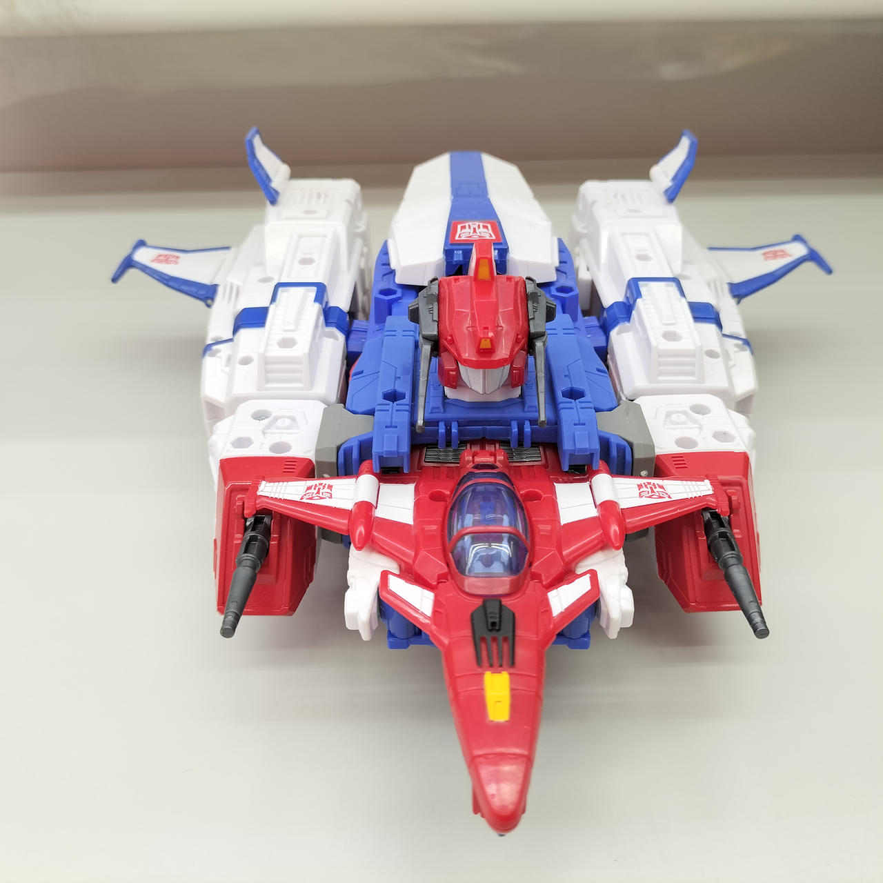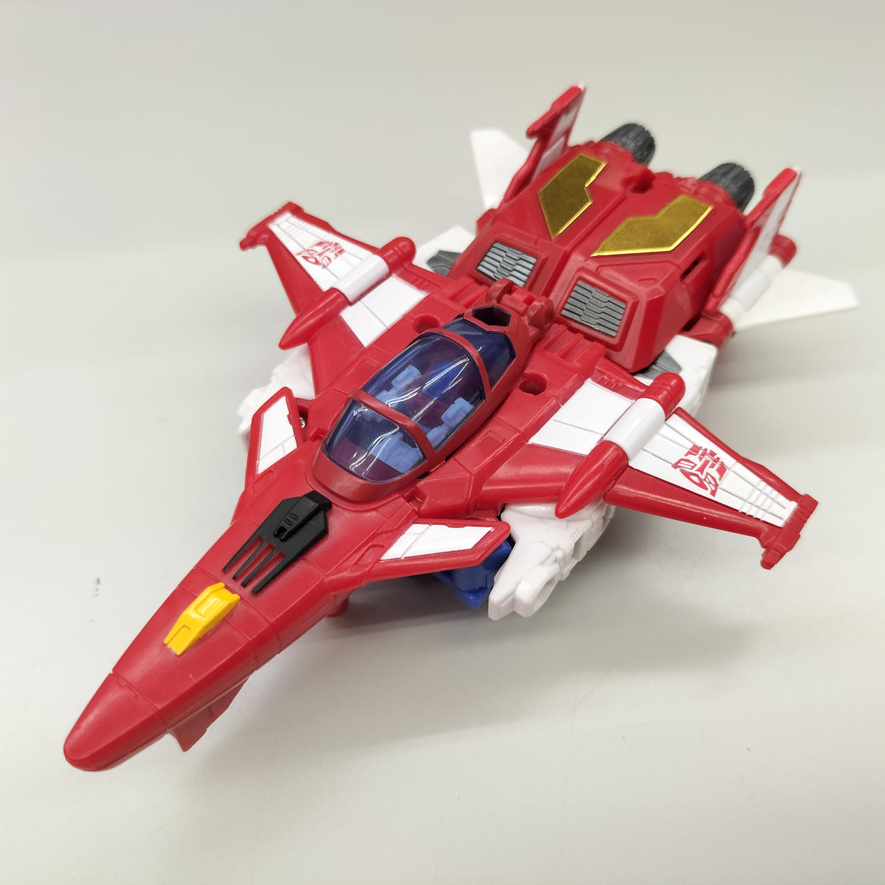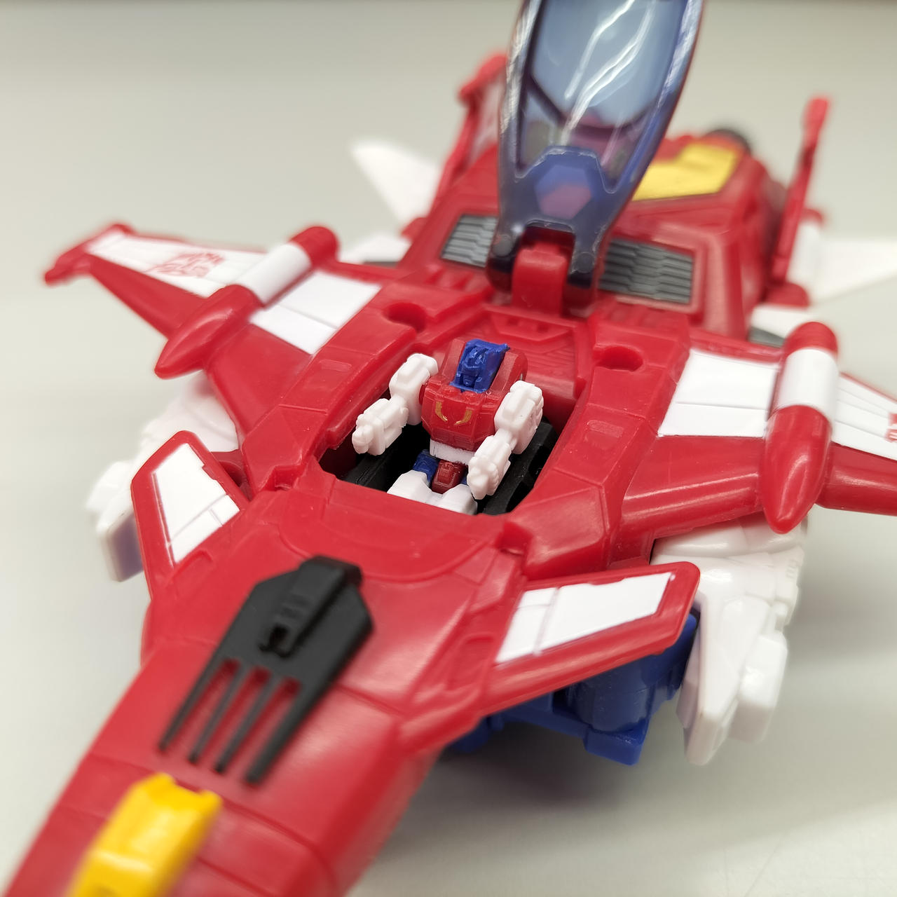 状態:  スターセイバーの剣=ジェット機機首の本体との接続がかなり固く、ジョイントに白化が見られます。