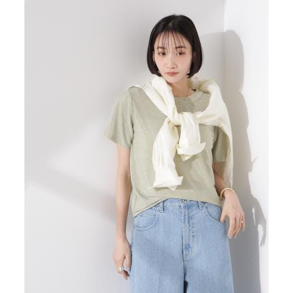 シーズンムードを盛り上げるラメ素材が映えるクルーネックTシャツ。伸縮性のある生地なので着心地が良く、デイリーコーディネートになじみやすい雰囲気がポイント◎。ジャケットやサロペットなどのインナーとしても重宝するから、シーズンレスで持っておきたいアイテムです。