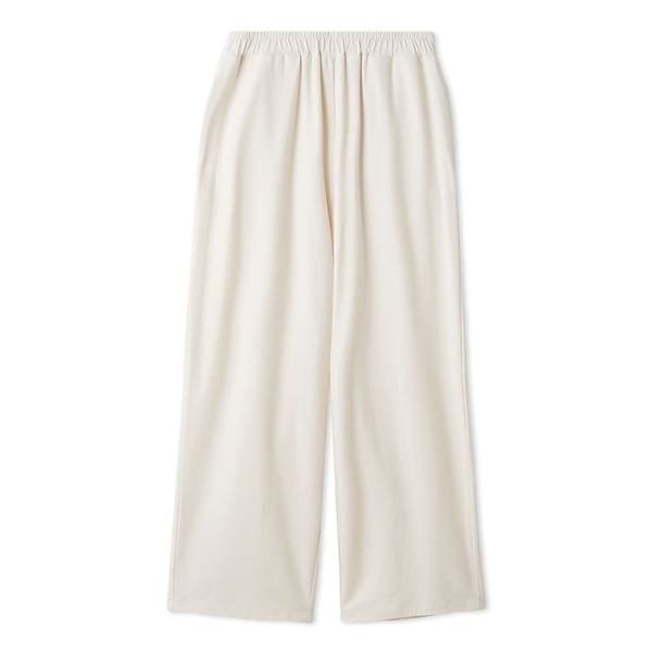 伸縮性のある綿素材を使用したルームウェアシリーズです。脚長効果を意識した、すとんと落ちるゆったりシルエットのロングパンツ。両脇にポケット付きで、ガーリーなカレッジテイストをお楽しみいただけます。色はキュートな小花柄プリントのピンクと、合わせやすい無地のアイボリー、カジュアルに楽しめる杢グレーの3色をご用意しました。同シリーズのロングTシャツに合わせたり、同時期に展開するジェラートボーダーシリーズとのコーディネートもおすすめです。