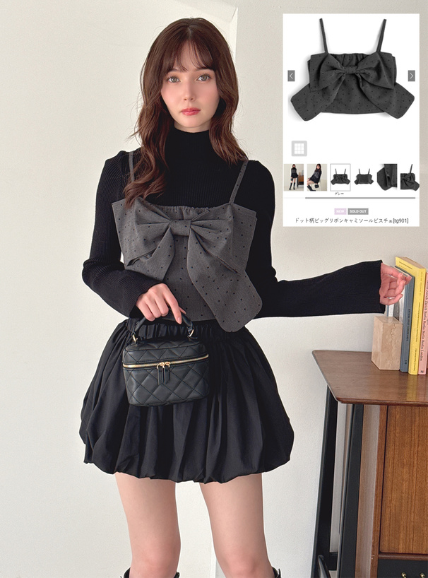 フロントの大きなリボンが視線を集めるデザインポイント。