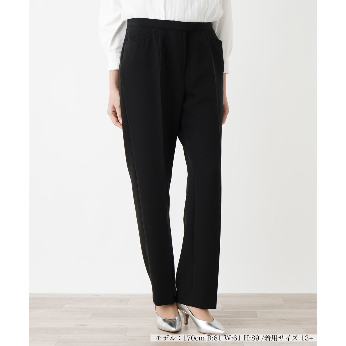 きちんと感のあるエレガントでモダンな印象を与える、ベーシックなデザインのセンタープレスパンツ。すっきりとしたストレートシルエットが美しいラインを演出し、スタイルアップ見せを叶えます。ウエスト部分はシンプルな仕様で、トップスをタックインしても綺麗にスタイリングできます。風合いのよい上質なストレッチ生地を使用し、快適なはき心地と動きやすさを実現しました。オフィスユースはもちろん、フォーマルなシーンにも適した汎用性の高いアイテムです。
