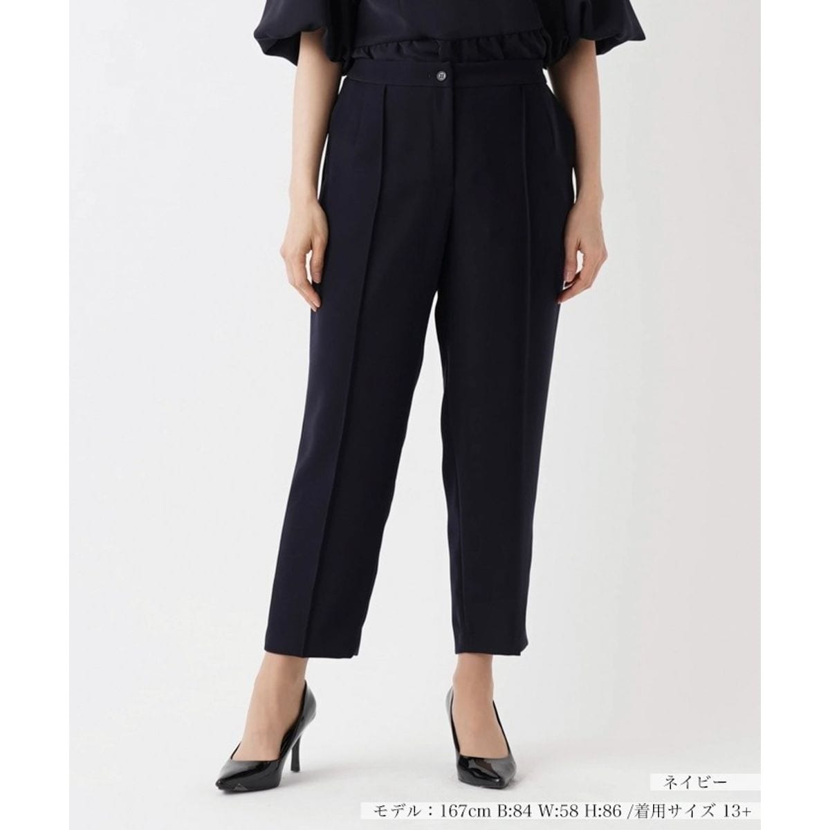 しっかりと入ったセンターシームがきりっとした印象を与え、裾に向かって緩やかに細くなるテーパードシルエットで美しいレッグラインを際立たせるアンクルパンツ。適度に深めに取られた股上が程よいリラックス感をもたらし、快適なはき心地を実現します。無駄な装飾を省いたシンプルなデザインで長く愛用でき、ビジカジから休日カジュアルまで多彩なコーディネートにフィットするワードローブの必須アイテムです。フロントボタン×ファスナーにより着脱が可能。