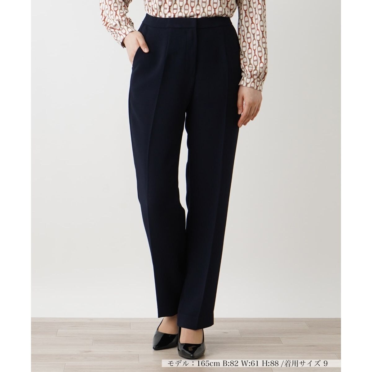 上品かつ落ち着いた雰囲気を漂わせる、ベーシックな無地のセンタープレスパンツ。軽やかで肌触りの良い薄手の生地を使用し、快適な着心地を実現しました。股上はやや深めに設定され、安心感のあるフィットをメイク。太すぎないストレートシルエットが脚を美しく見せ、洗練された印象を演出。オフィスシーンからカジュアルスタイルまで、幅広いコーディネートにマッチする一本です。フロントはホック&スナップボタン、ファスナーで留められる仕様です。