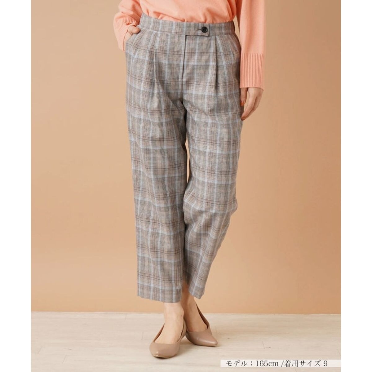 クラシカルなグレンチェック柄のストレートパンツ。レッグラインは太すぎず細すぎずのシルエットを描き、適度なリラックス感が感じられる一本です。前ウエスト周りにバランスよく施したタックがポイントになり、きちんと感を意識したスタイリングが叶います。デイリーカジュアルはもちろん、通勤シーンにもおすすめのボトムスです。フロントはボタン&ファスナーにより開閉が可能。