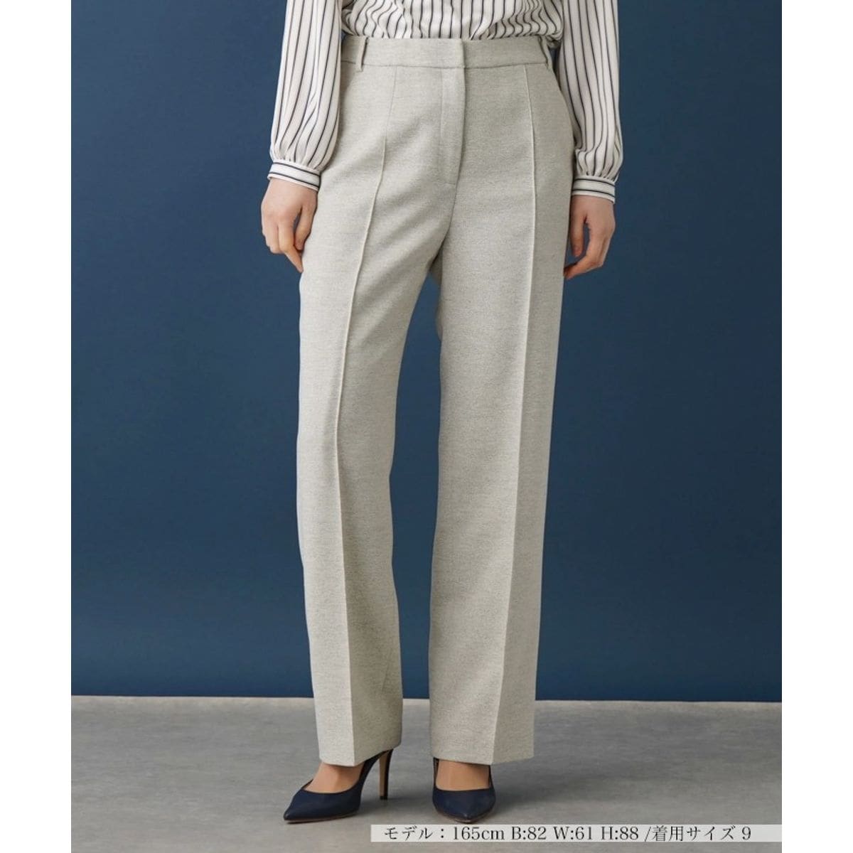ミックストーンの織地を使用した、独特な表情のある質感のワイドパンツ。股上をやや深めに設定したリラックス感のあるストレートシルエットでありながらも、センタープレスを施すことで洗練された佇まいをキープ。無駄な装飾を省いたベーシックなデザインで多彩なシーンにマッチするアイテムです。セットアップでの着用はもちろん、様々なトップスやジャケットと相性がよく、汎用性に優れたアイテムです。フロントはホック&ファスナーにより開閉が可能。