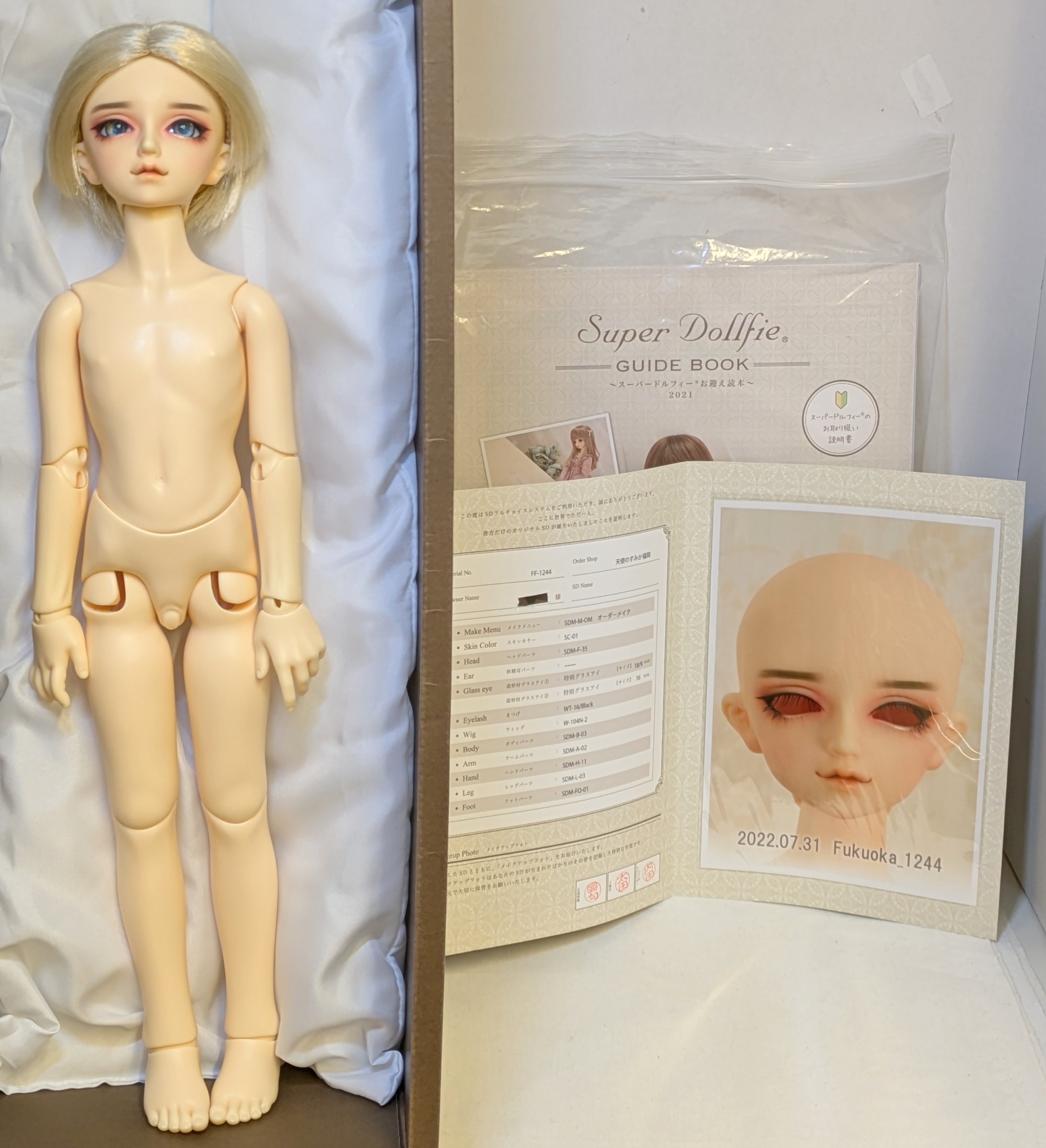 商品状態: 箱・証明書(氏名切り取り済)・ドール本体のみ/メイク済/シュピット加工のヘッド蓋/額スレ