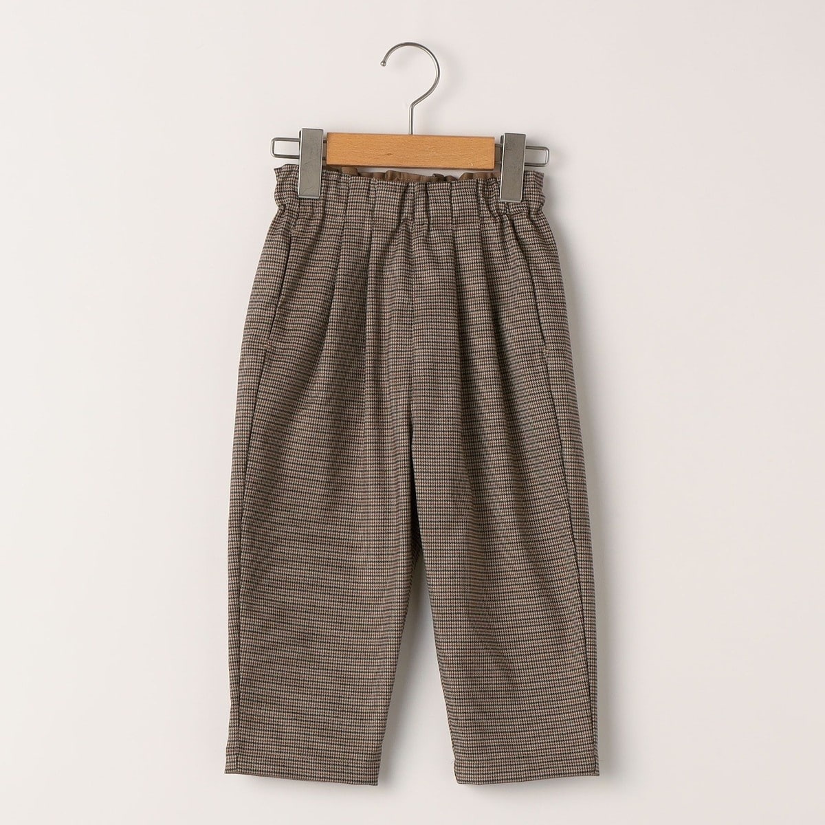 柔らかくて厚手すぎない千鳥柄生地を使用したタックパンツ。