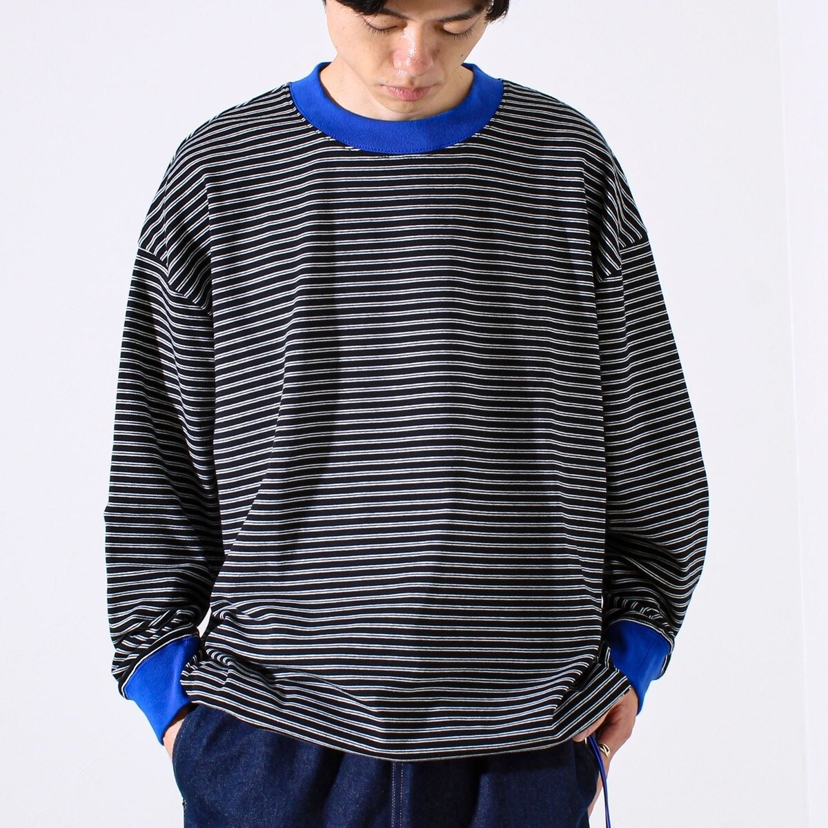 #ボーダーT #ロングスリーブTシャツ #裾ドローコード #配色リブ #ユニセックスコーデ #ストリートカジュアル #大人カジュアル #もちもち素材 #抜け感コーデ