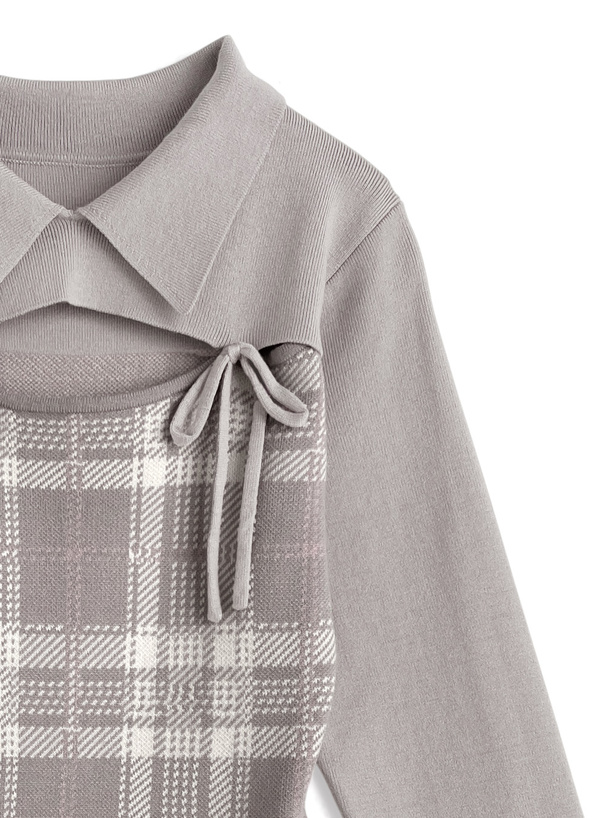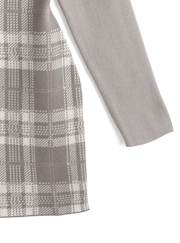 襟デザインやクラシカルなチェック柄が、落ち着いた雰囲気をプラス。