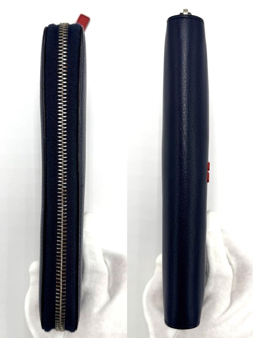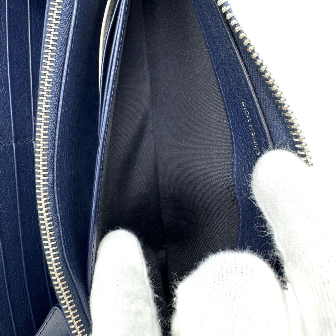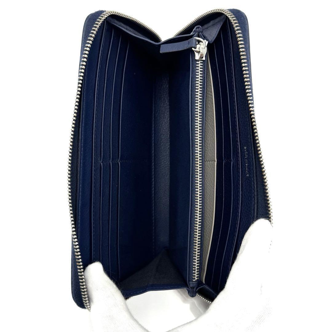 ネイビーのレザー製でCDロゴが特徴的な長財布。
