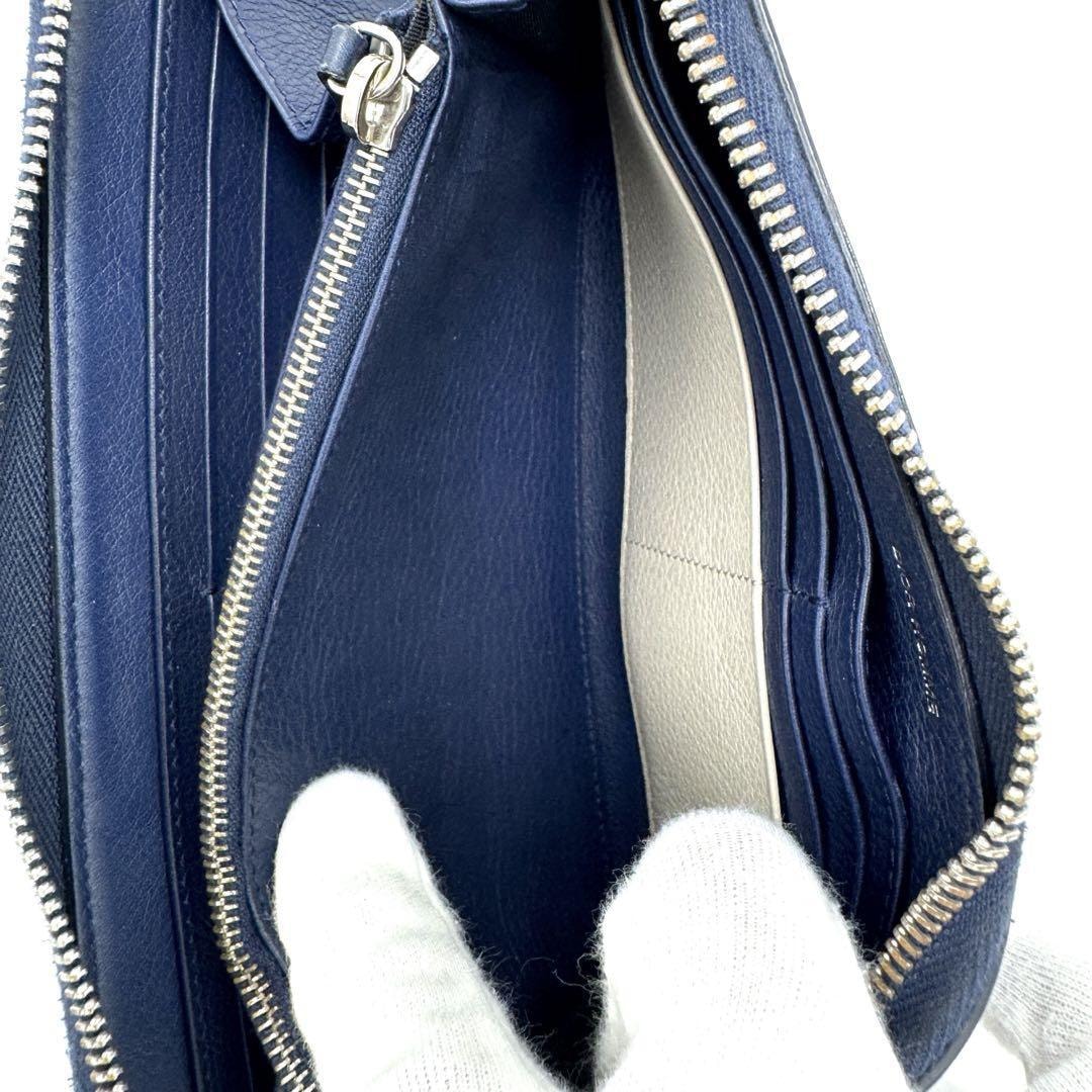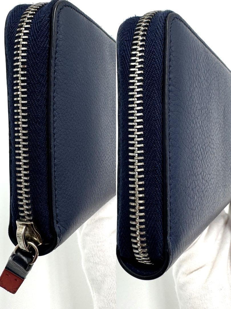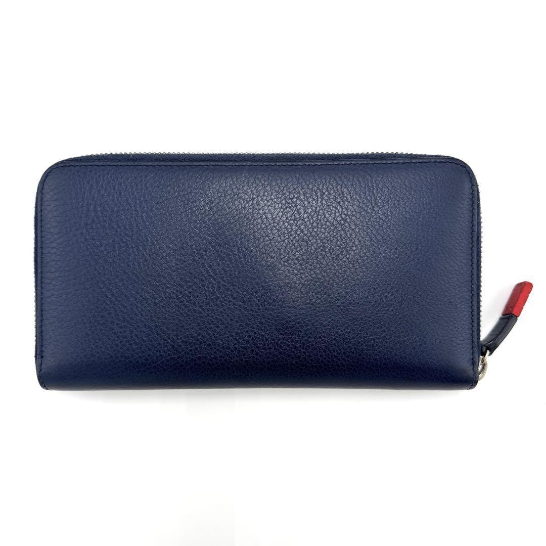 ネイビーのレザー製でCDロゴが特徴的な長財布。