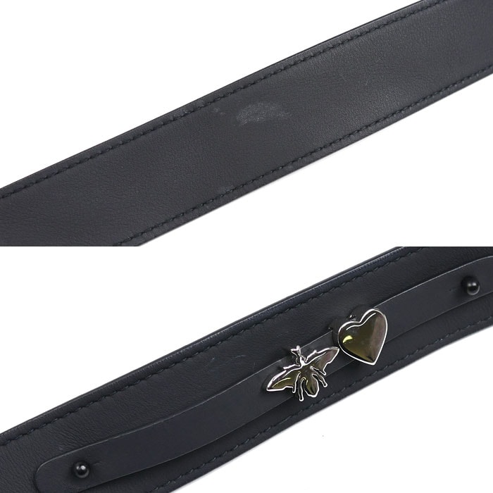 【状態】金具に薄いスレ、底鋲先端に色ハゲ、ハンドルにスレ・シワ、底部レザーに少しのスレと薄い白け、被せ内側と内装底部にスレ、レザーに擦れ傷、ショルダーに少しのヨレ・内側にシミ・ラメの付着あり。やや化粧品の臭いあり。また展示品の為、色やけ・多少の傷みや小キズ等ある場合がございますので予めご了承下さいませ。