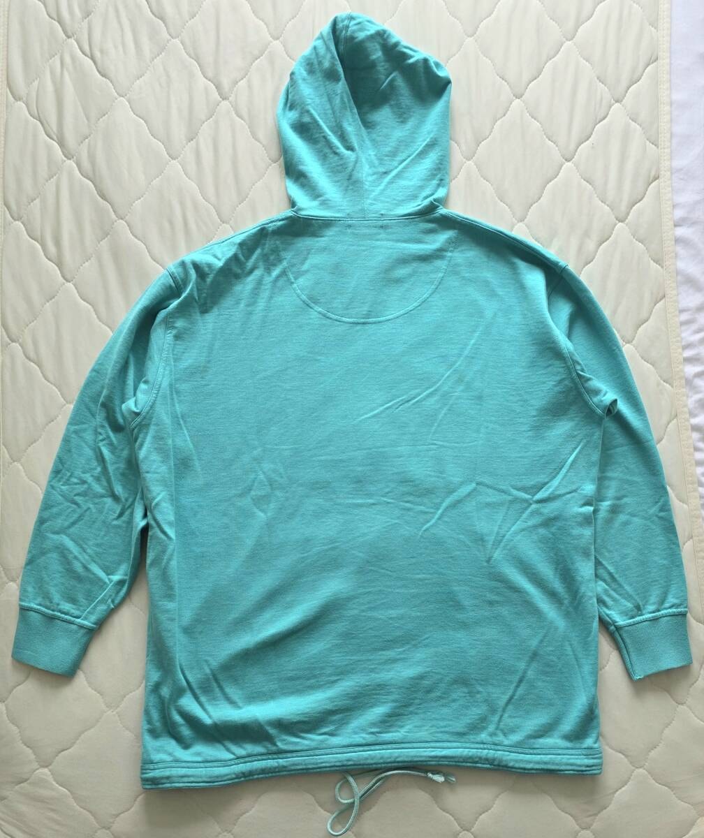 襟の裏側の一部がストライプになっていたり、裾のドローコードでシルエットが変えられるなど、凝ったデザインです。表記サイズはMですが、実質L~XLくらいの大きさがあると思います。詳しくは平置き実寸サイズをご参照ください。