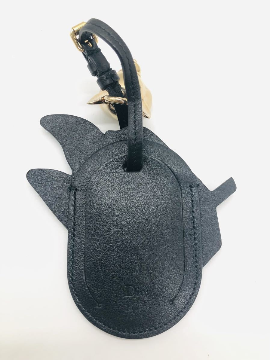 ディオール バッグ チャーム ブラック ホワイト ゴールド レザー ネームタグ