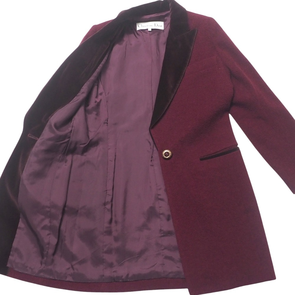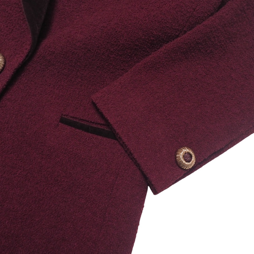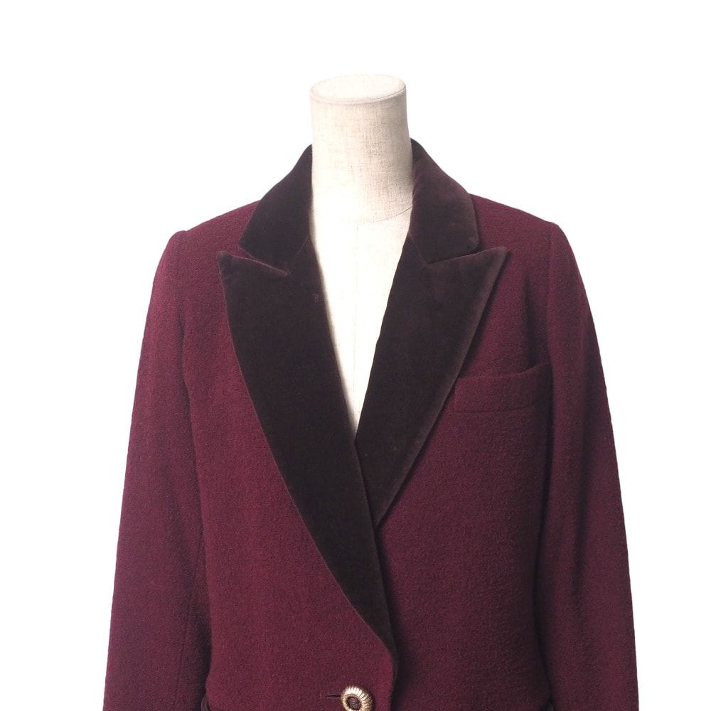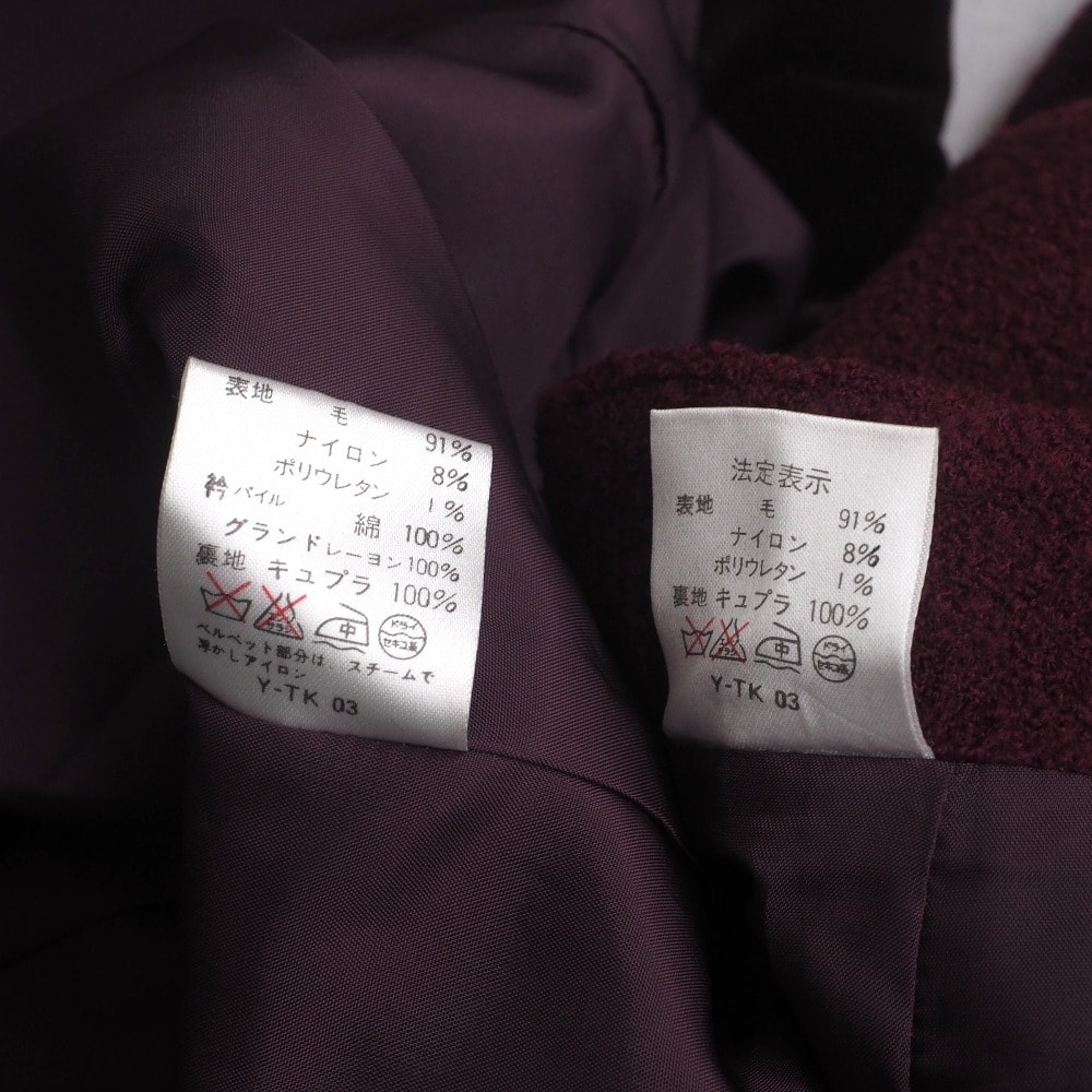 ウール91%ナイロン8%ポリウレタン1%、裏地:キュプラ100%、衿パイル:綿100% グランド:レーヨン100%