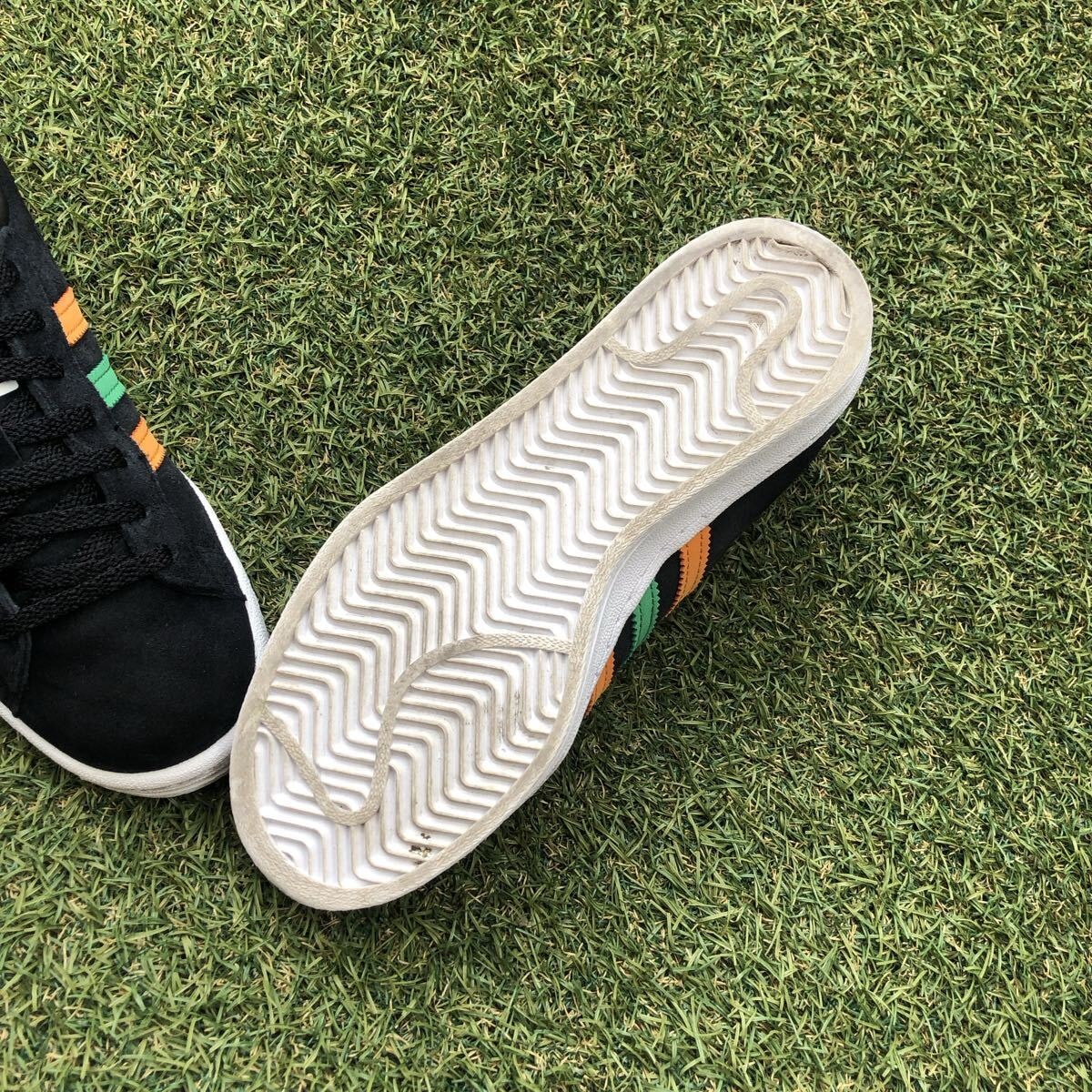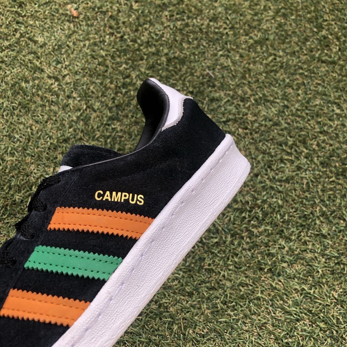 グリーンとオレンジのコントラストカラーによるスリーストライプを配し、シューレースのチップにもグリーンとオレンジを使用したスペシャルエディション!
