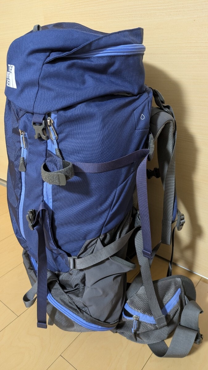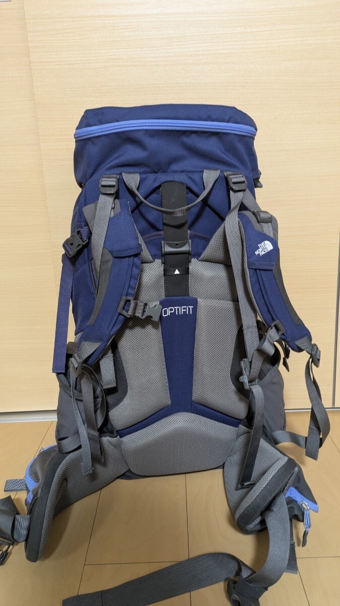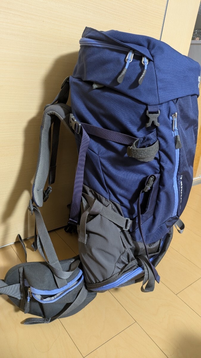 調整可能なストラップと複数のポケットを備えたネイビーのTERRA 55バックパック。