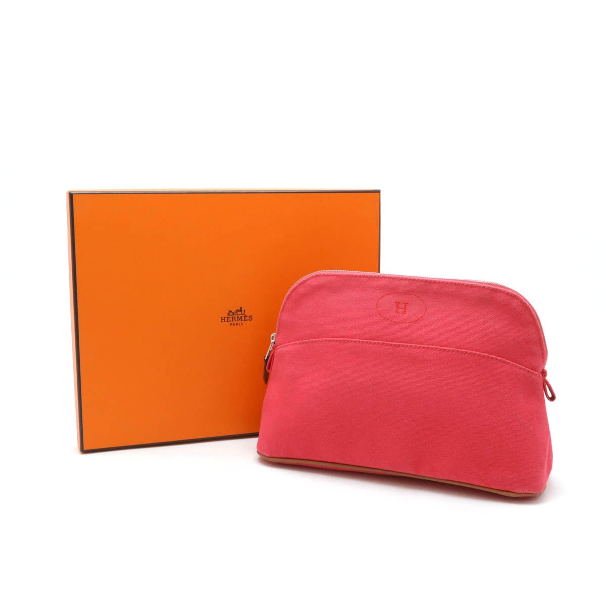 # HERMES エルメス ボリードポーチ MM 化粧ポーチ コスメポーチ 小物入れ コットンキャンバス レザー フューシャ ピンク