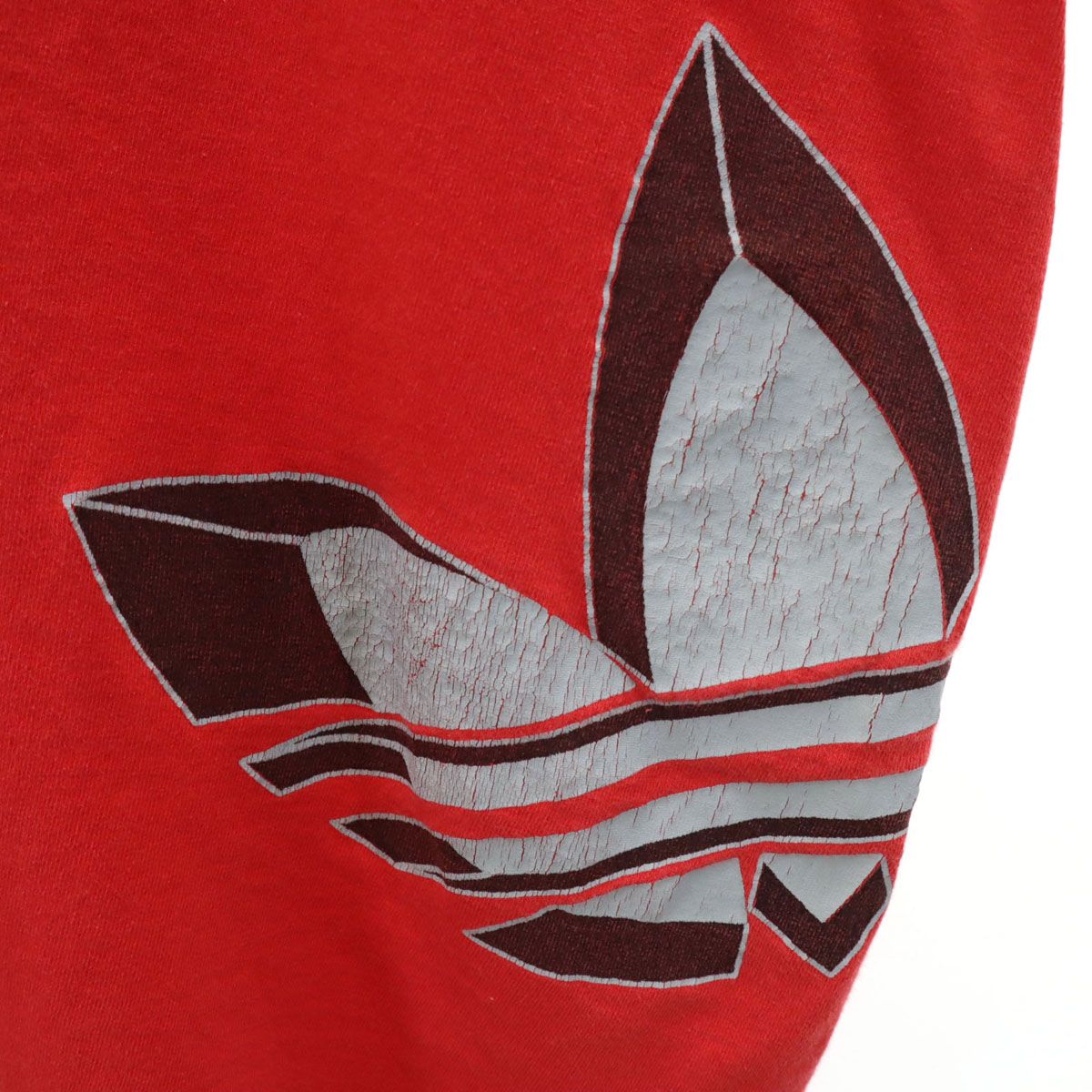 80年代後半から90年代前半頃のオールドのアディダスになります。右肩に穴、プリント割れ、所々に汚れあり。内タグが切り取られておりサイズ、素材共に不明です。実寸も参考にお願いします。古着にご理解の上ご購入をお願い致します。