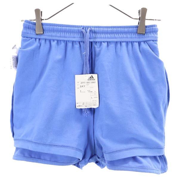 未使用 アディダス 90s デサント製 ロゴ刺繍 テニス ミニ丈 スコート L ブルー adidas インナーパンツ付 スカート レディース