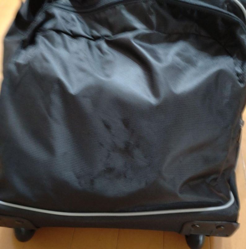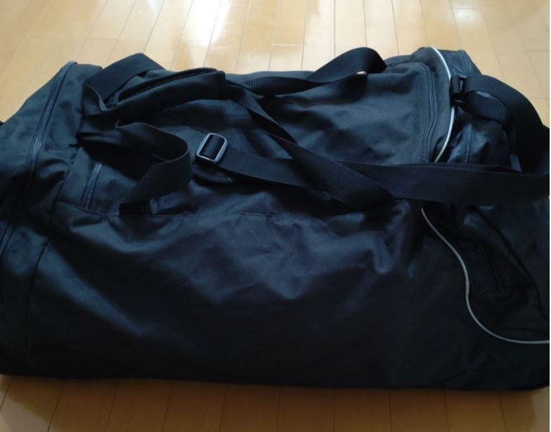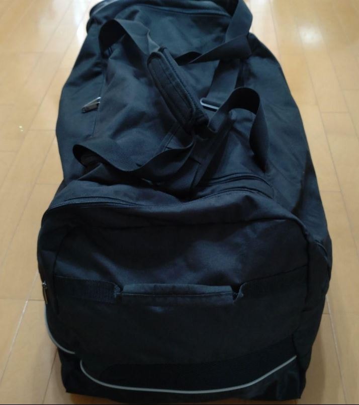 長期旅行で数回使用。正面左のポケットの前に8cm8cm位に擦り傷有り。他、分かるような傷や汚れは有りません。手計りですので多少、誤差はあると思いますが 100Lは有る大型のウィール付きダッフルバッグで 移動も楽です。7泊以上の中期旅行やスキー等の厚手の冬物を 収納する旅行に最適です。正面右に40cm40cmの下部メッシュの大きなポケット有り。奥行が有るのでシューズも入ります。正面右にも奥行きのない40cm40cmのポケット 中に16cm12cmのポケットと55cm20cmの仕切りが有ります。長さ調節可能なショルダーストラップと2本のグリップ付きキャリーハンドル。サイドに持ち手。