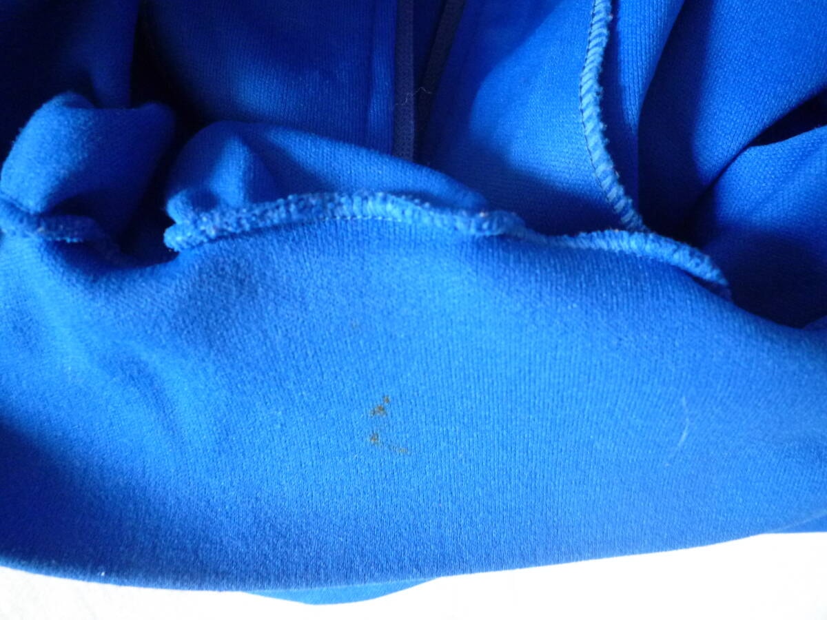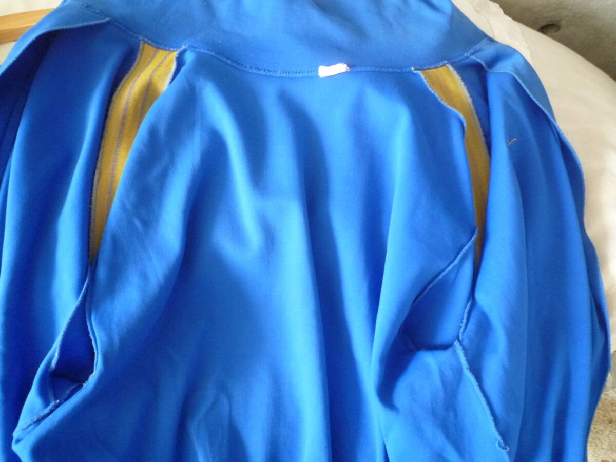 ジャージやナイロンジャケットに稀に見られる、やや裾に向かってテーパードしている作りですので身幅の値よりは大きくは感じないかと思います。 ■色ブルー系。 ■状態USEDです。ヴィンテージトラックジャケット特有の着用感、汚れ等ございます。古着慣れしている方は問題ないかと思われます。