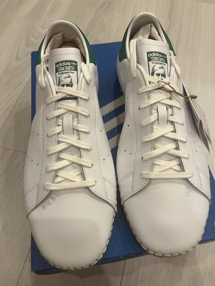 adidasのStan Smith、ホワイトとグリーンの配色で、ゴムソールを採用したスタイリッシュなスニーカー。