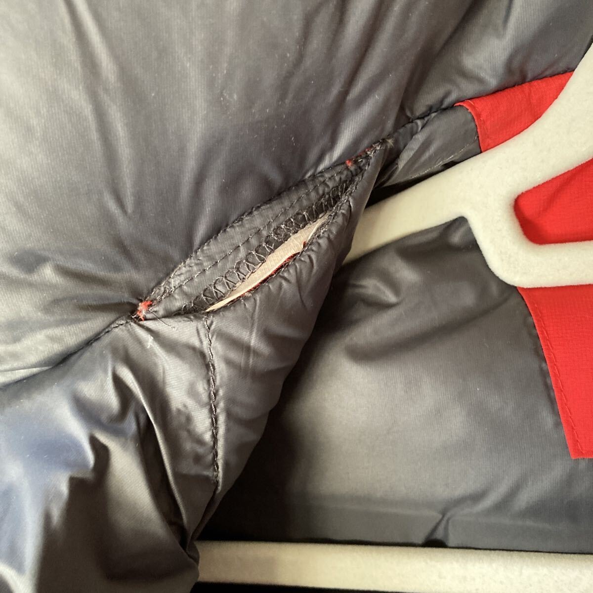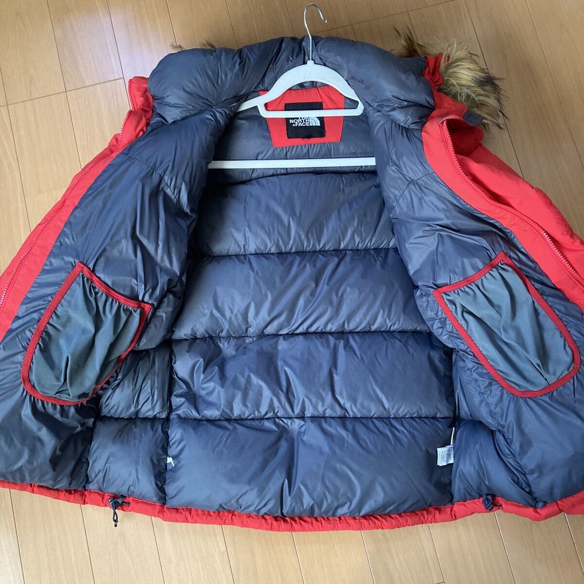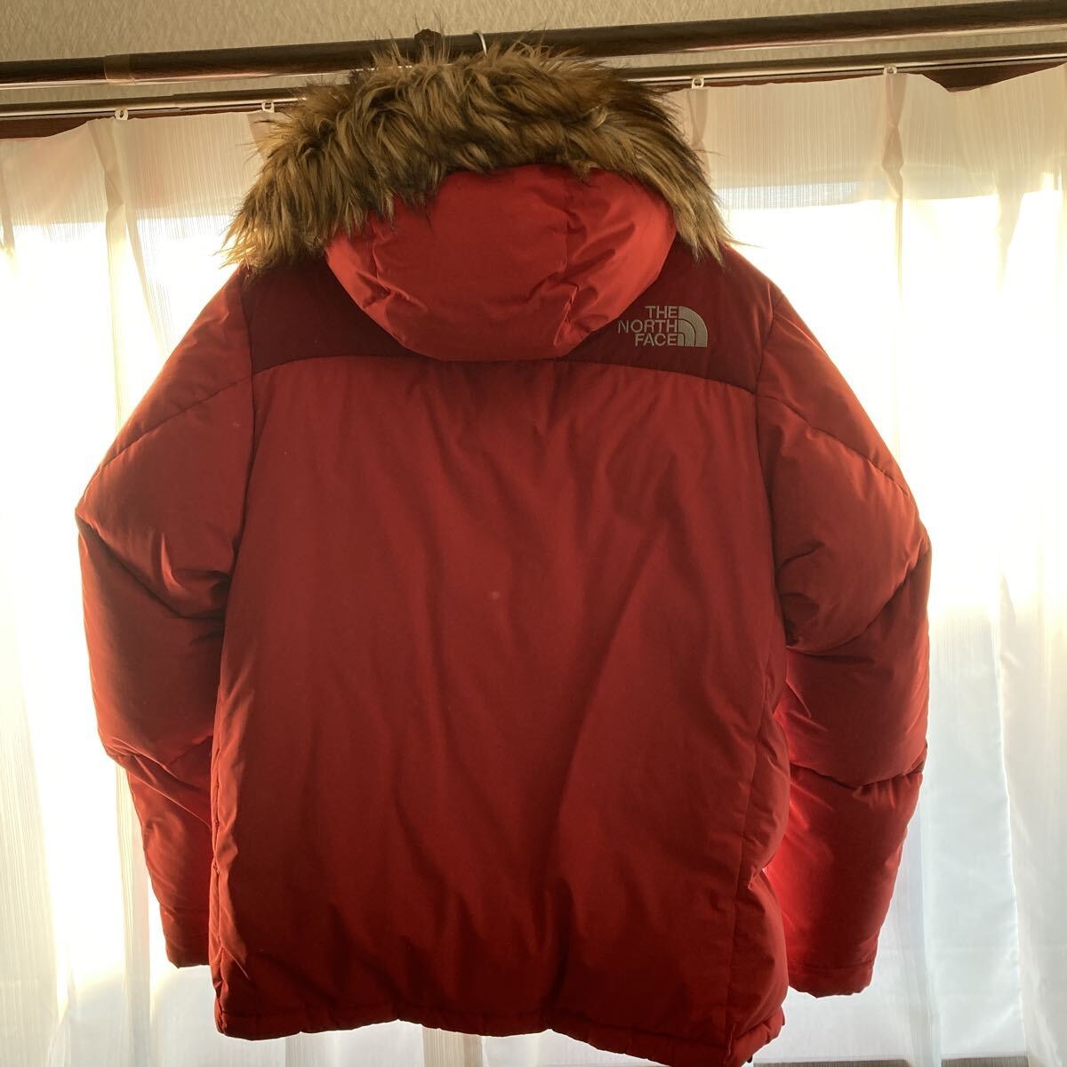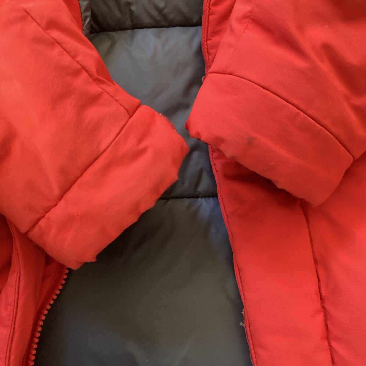 赤で目立つダウンジャケットで、かなり温かいです。サイズ感Mくらいで、ゆったりめかと思います。