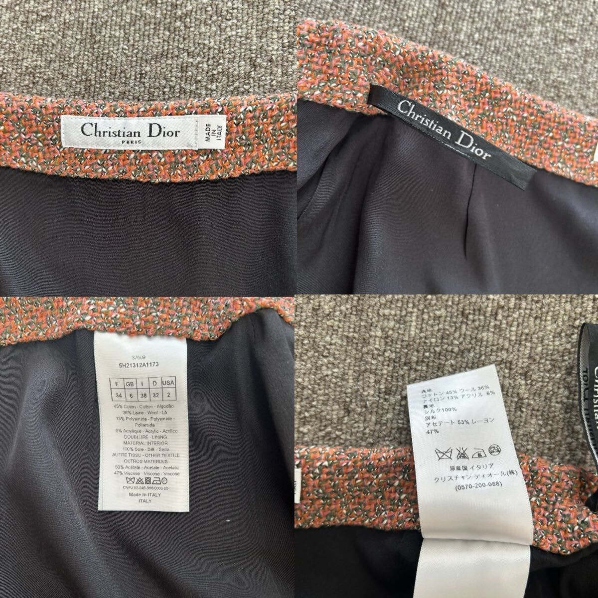 【商品名】Christian Dior クリスチャンディオール ツイード スカート 34 コットン マルチカラー ウール レディース