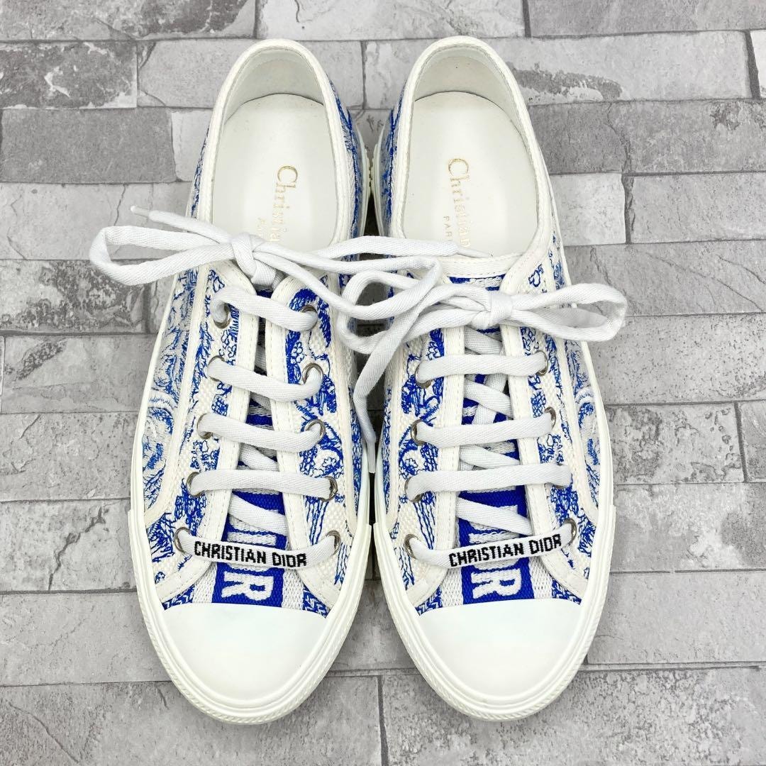 クラッシックでカジュアルなデザインとエレガントでナチュラルな「トワルドジョイ」の刺繍が施されたウォーキンディオールのスニーカー