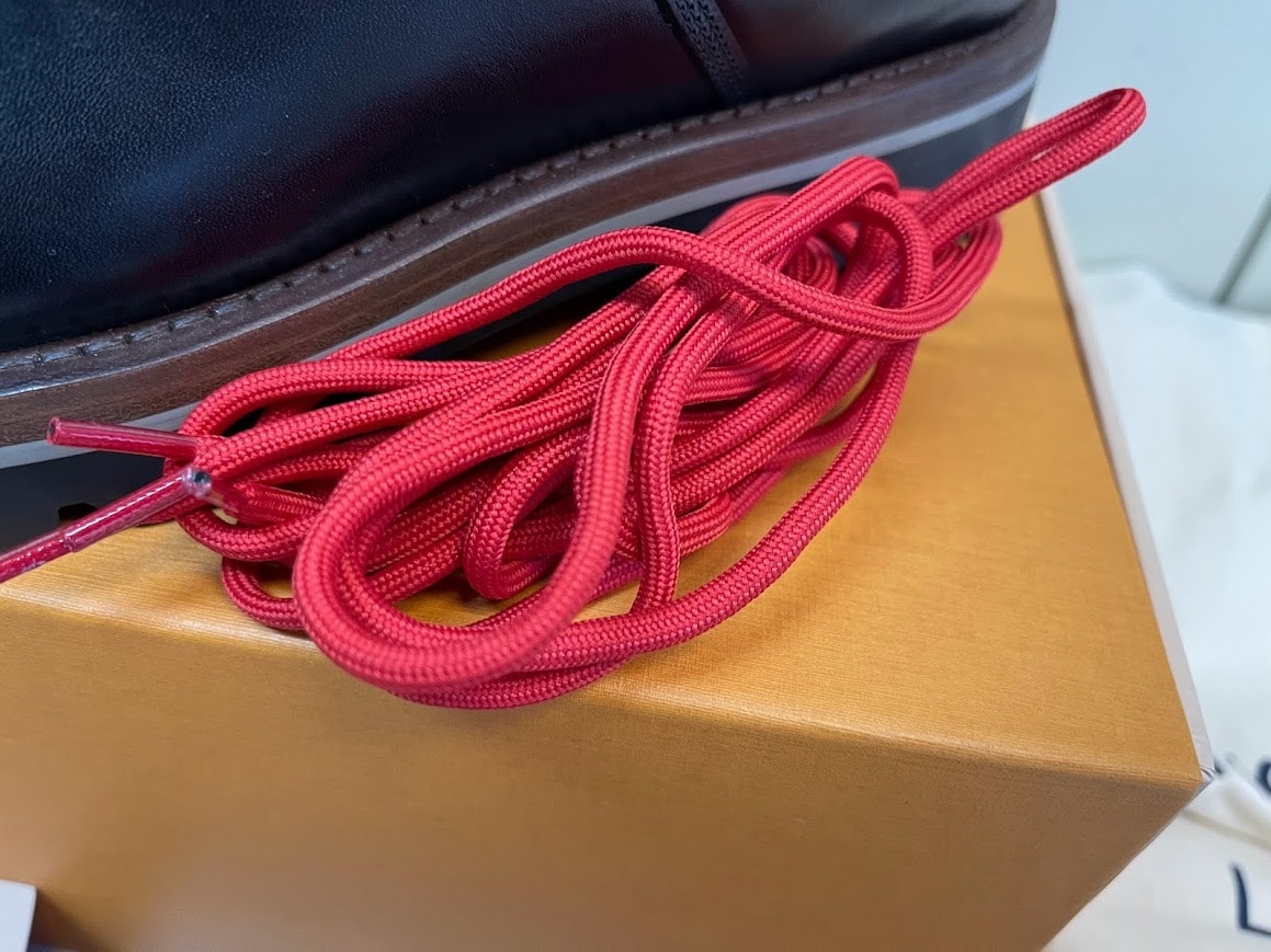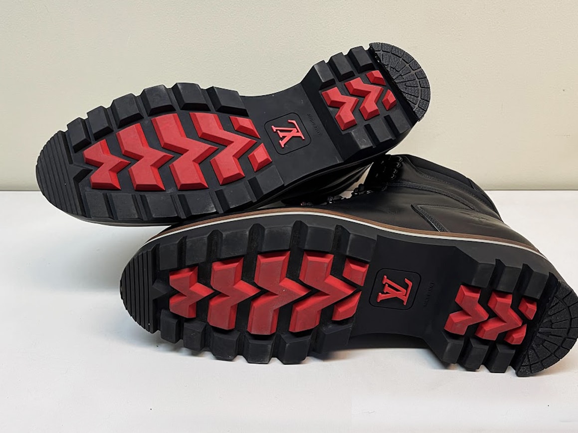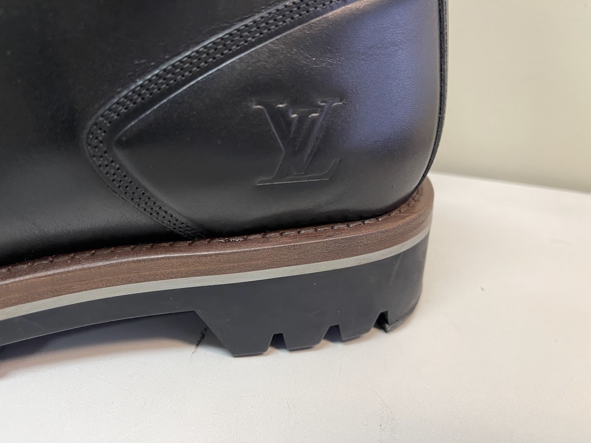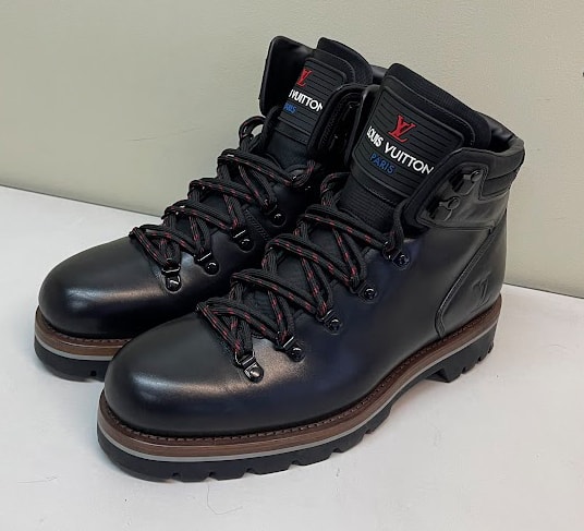 ルイ・ヴィトンオンラインで購入 1回のみ着用極美品です。ソールにヒールガードと取り付けています。(粘着シールで張り付けているだけなので取り外すことはできます。) 付属品は箱・保存袋・領収のコピー・リボン・ショッパー 素材:カーフレザー(皮革の種類:牛革) アウトソール:ラバー・サイドにLV イニシャル・イタリア製 トレッキングブーツから着想を得て、スムースカーフレザーで仕立てた「オーベルカンフ・ライン アンクルブーツ」。ハイキングスタイルのシューレース、パッド入りのシューカラーとライニング、トレッド付きのラバーのアウトソールが特徴です。サイドにはLV イニシャルがエンボス加工され、舌革には「Louis Vuitton」のラベルがあしらわれています。 落札後は速やかにお支払い手続きできる方のみご入札下さい。 土日祭日の発送は致しておりません。