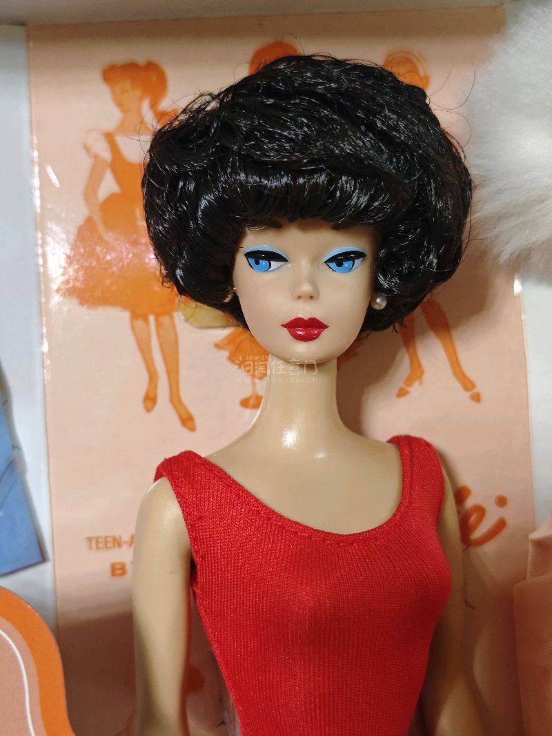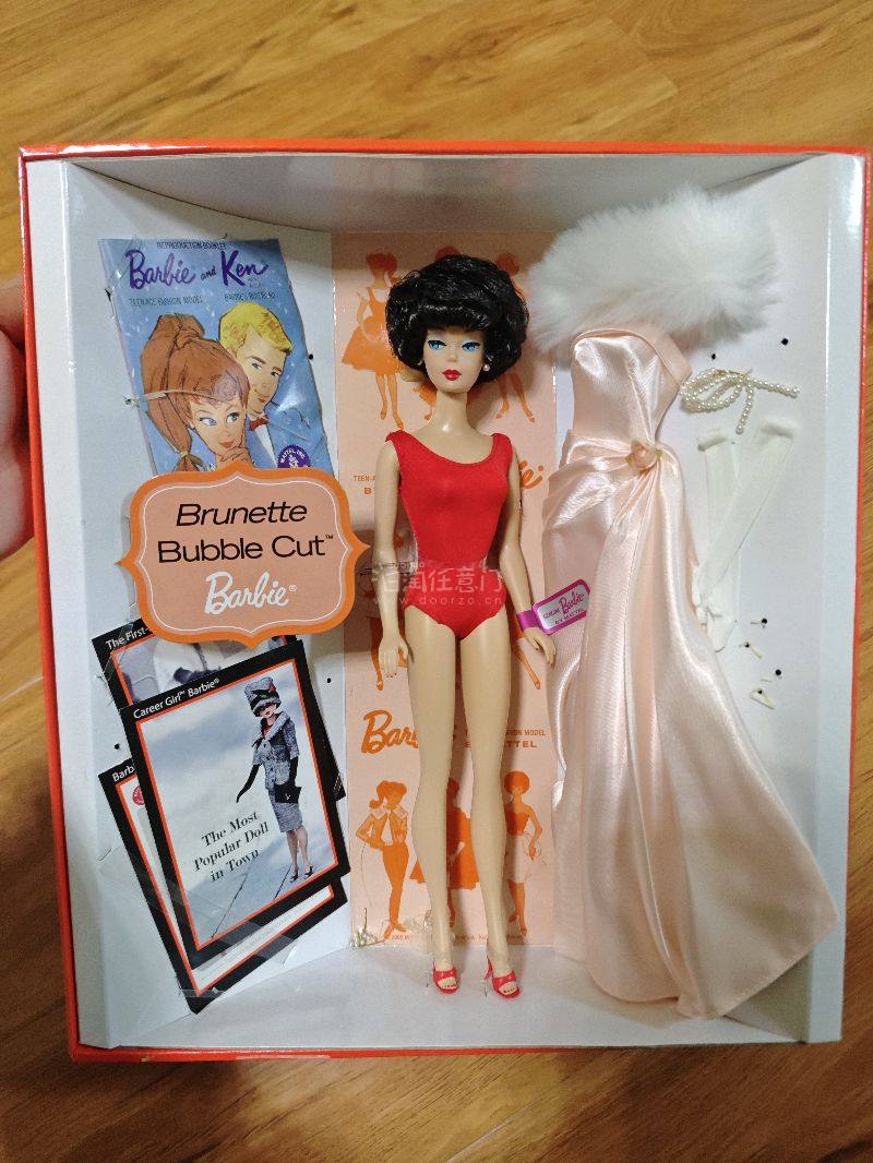 这是一款芭比50周年纪念版1962 Brunette Bubble Cut Barbie收藏级娃娃,它是芭比历史传承与时尚魅力的经典缩影。 1962年,“泡泡头”(Bubble Cut)发型的芭比横空出世,这款娃娃复刻了当年的经典造型。深棕色的泡泡头短发蓬松俏皮,是60年代时尚发型的标志性体现,搭配芭比标志性的精致面容,将复古风情拉满。 娃娃的配件极具诚意,红色连体衣简约又充满活力,而那件浅粉色缎面礼服更是亮点,柔滑的面料搭配白色毛绒饰边,尽显优雅华贵,再配上珍珠首饰与白色长手套,完美还原了60年代名媛的穿搭风格,每一处细节都彰显着复古时尚的精致感。 从收藏价值来看,它属于芭比Collector系列,还带有50周年纪念标识,是对芭比半个世纪时尚征程的致敬。包装内的复古风海报、画册等附属品,不仅丰富了收藏内容,更像是一扇时光之门,带收藏者回溯芭比在1962年的时尚荣光,对于芭比收藏爱好者和复古时尚追随者而言,它是极具意义的藏品,承载着芭比品牌的历史记忆与时尚基因,是时尚史与玩具收藏史交融的珍贵载体。
