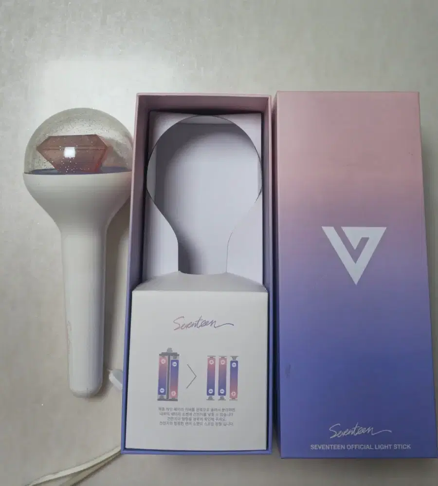 세븐틴 구버전 응원봉 판매합니다.응원봉과 박스에 하자 많아서 싸게 내놓습니다. 불은 들어오지 않습니다.