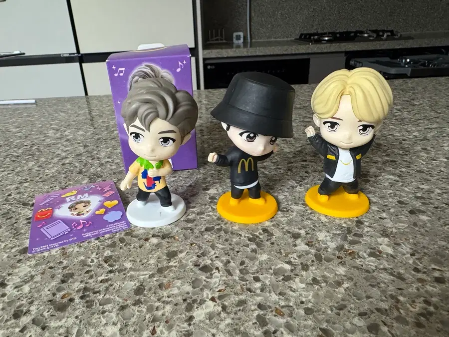 맥도날드 해피밀 BTS 피규어 판매합니다. RM 포함해서 3개 피규어 한꺼번에 드립니다. TinyTAN 콜라보 제품이라 퀄리티 좋아요. 문의 없으시면 바로 안전결제해주시면 됩니다! 전시만 해두다 정리합니다. 사진상태 그대로입니다.