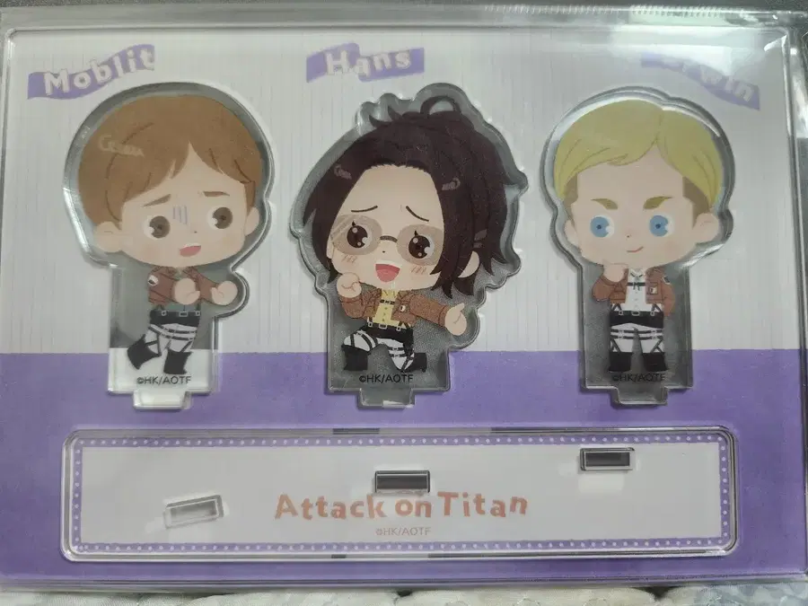 진격의 거인 아크릴 스탠드 3종 세트입니다. 모블릿, 한지, 엘빈 3인방이 귀여운 SD캐릭터로 디자인되어 있습니다. 미개봉 새상품이며, opp포장 그대로 보관하고 있습니다. 문의 없으시면 바로 안전결제해주시면 됩니다!
