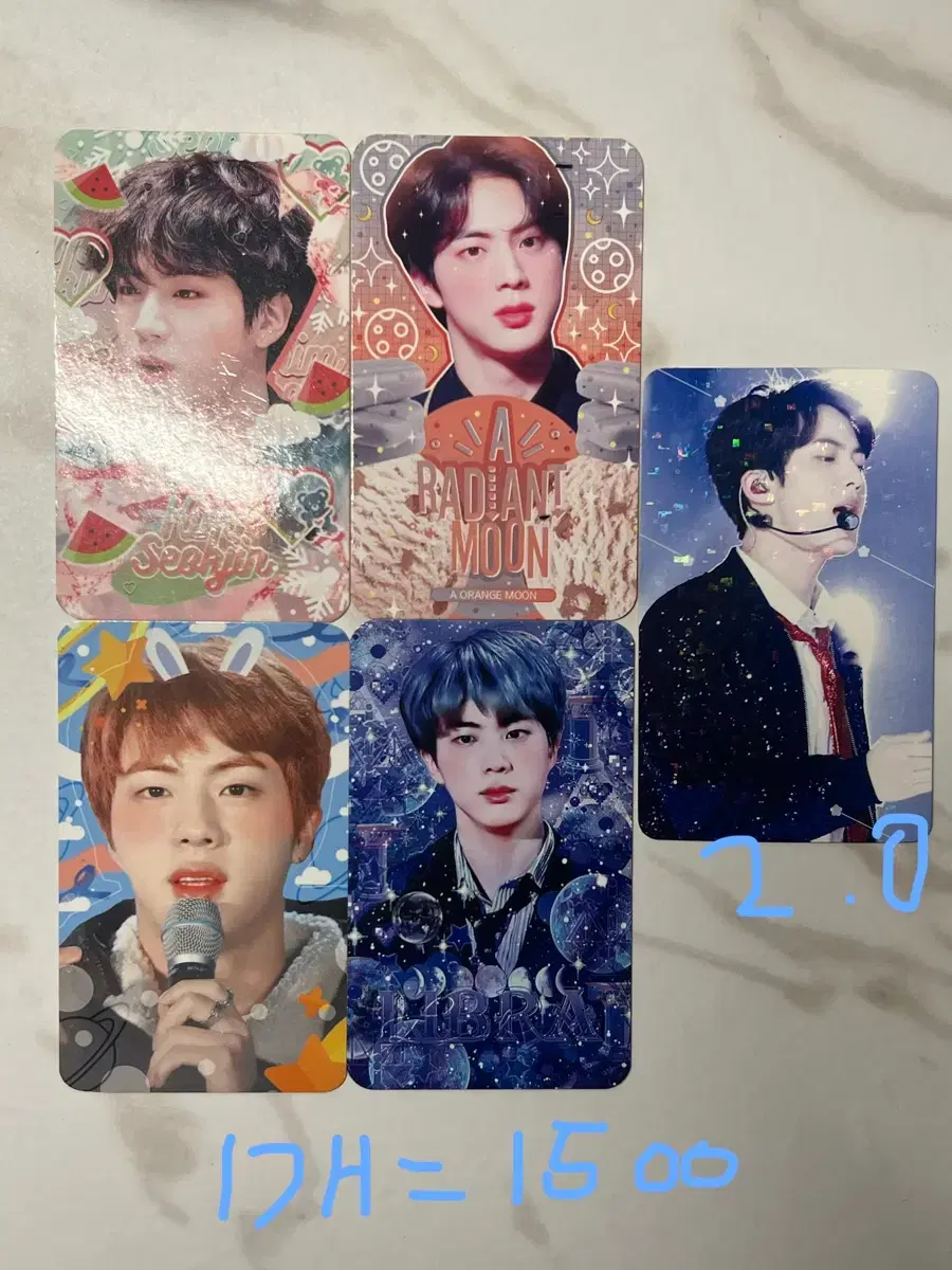 사진에 나와있듯이 각 멤버별 1장당 1.5 이고요, 하자는 제가 하나하나 검사해보니 하자는 없었으니 안심하고 구매하셔도 좋습니다!!🥰🥰 가격이 2.0인 것들은 홀로그램이 같이 들어간 굿즈여서 반짝반짝 합니다✨✨✨ ⭐️가격제안은 최대 1,000원까지 입니다!!!🚨🚨🚨🚨🚨 ⚠️⚠️⚠️⚠️⚠️⚠️⚠️⚠️⚠️⚠️⚠️⚠️⚠️⚠️⚠️⚠️⚠️ 웬만하면 구매시 직거래 부탁드립니다🥰🥰