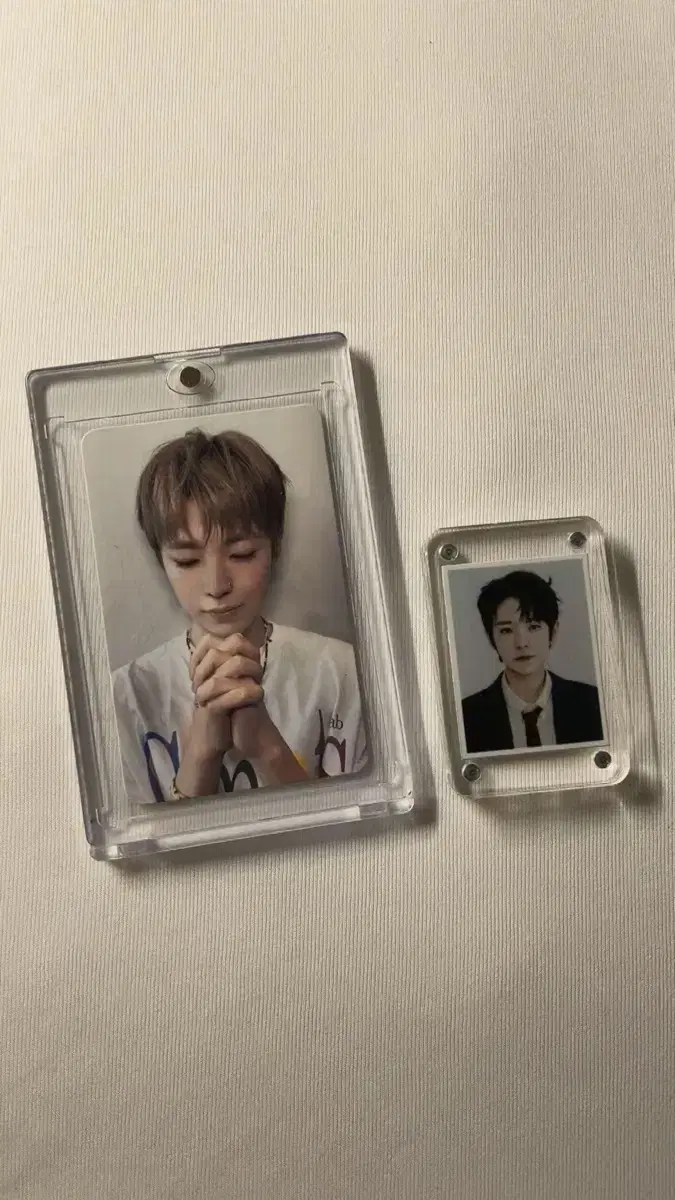 증사 보관용 아크릴은 눈에 띄는 기스 있습니다! 둘 다 아크릴이기 때문에 깨끗하다고는 못 해요🥹 예민하신 분들❌❌ 일괄 가격이라 개별은 따로 연락주세요!