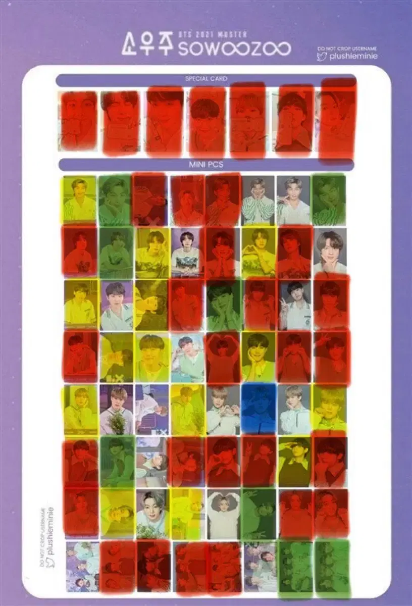 뜯어서 보관만 해뒀습니다. 슬리브 안 끼워뒀고 제가 분류해놓은 후 멤버별로 다시 넣어뒀습니다(멤버7박스+단체1박스+빈박스2).
