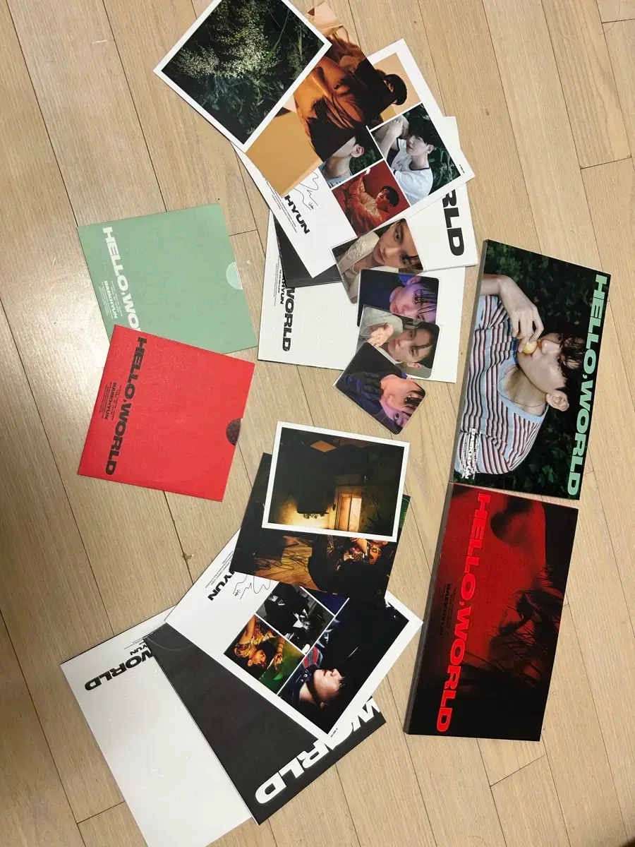 백현 hello, world 포토앨범 2개(예사특전포카포함)와 폴더앨범 1개 일괄 판매합니다. 앨범은 잔기스 있습니다. 포카는 최대한 하자 없이 슬리브에 보관하였는데, 예민하신 분들은 구매 삼가주셨으면 좋겠습니다. 첫번째 사진에 있는 상품 전부 보내드립니다. 학생이라 톡 확인이 늦습니다.